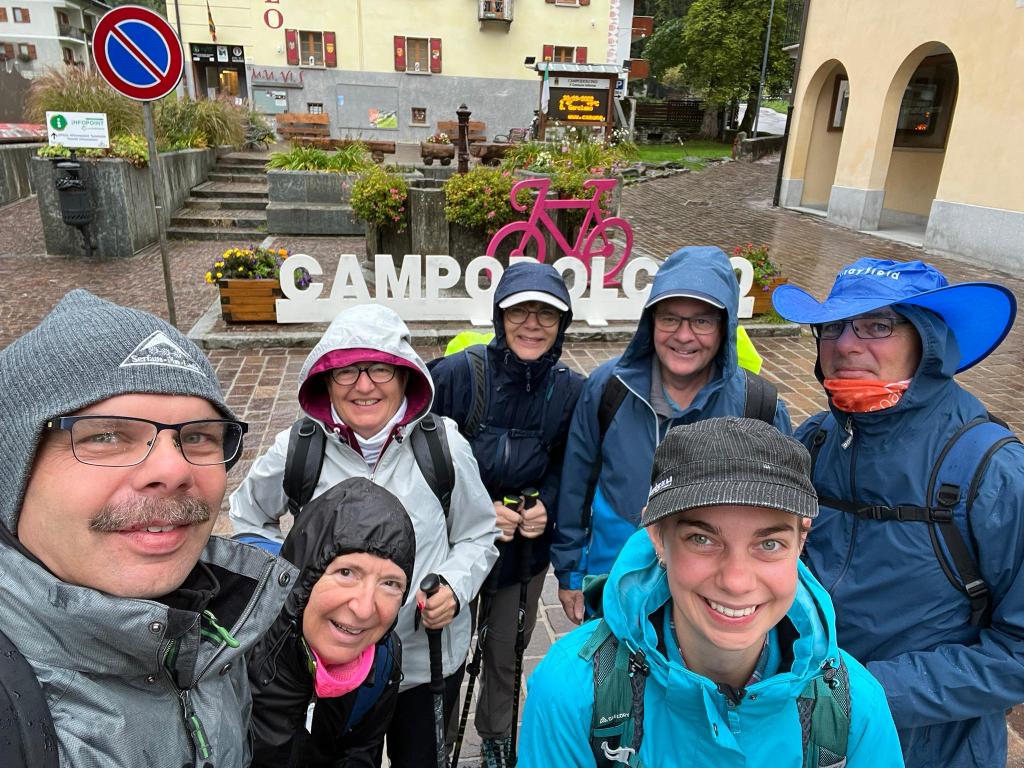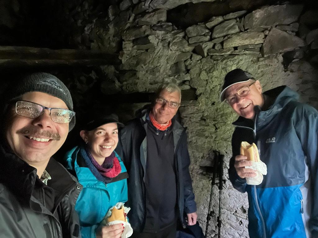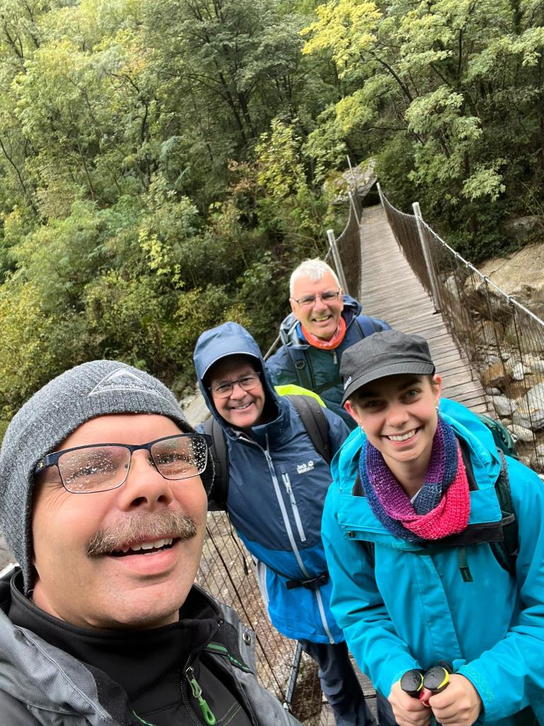 In Campodolcino regnete es immer noch…nach einer Wanderstunde regnete etwas stärker und die Aussichten waren nicht besser. Eine kurzfristig angeordnete Strategiebesprechung ergab folgendes; Die Frauen (ausser Victoria) haben genug Regen gesehen und nahmen den Bus nach Isola ins Hotel.