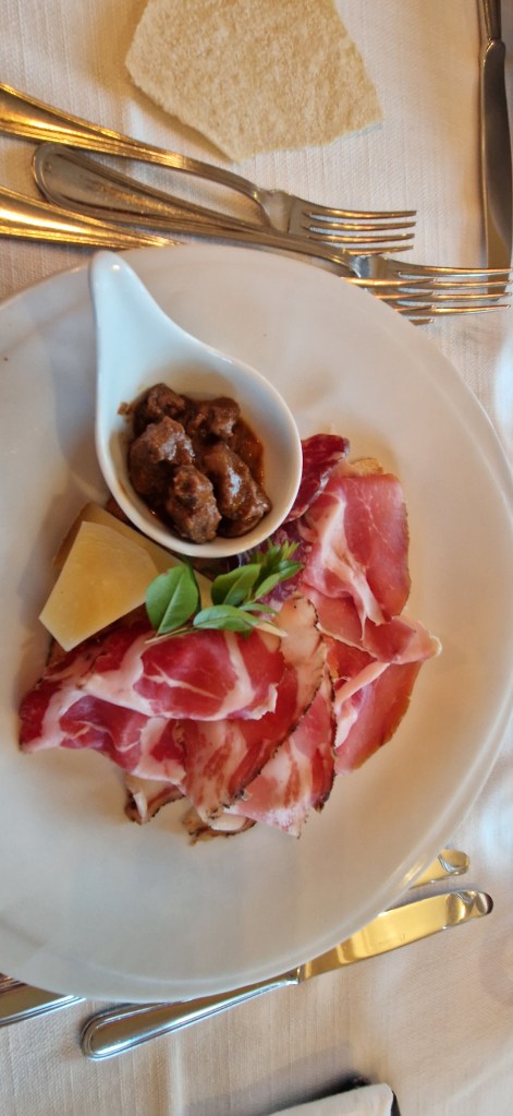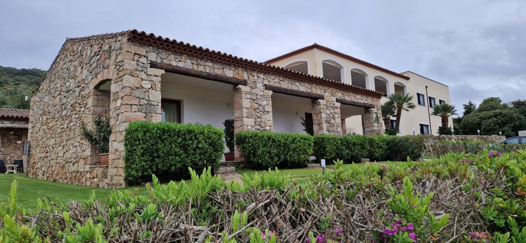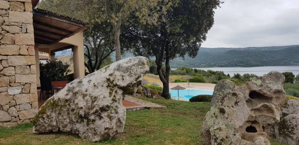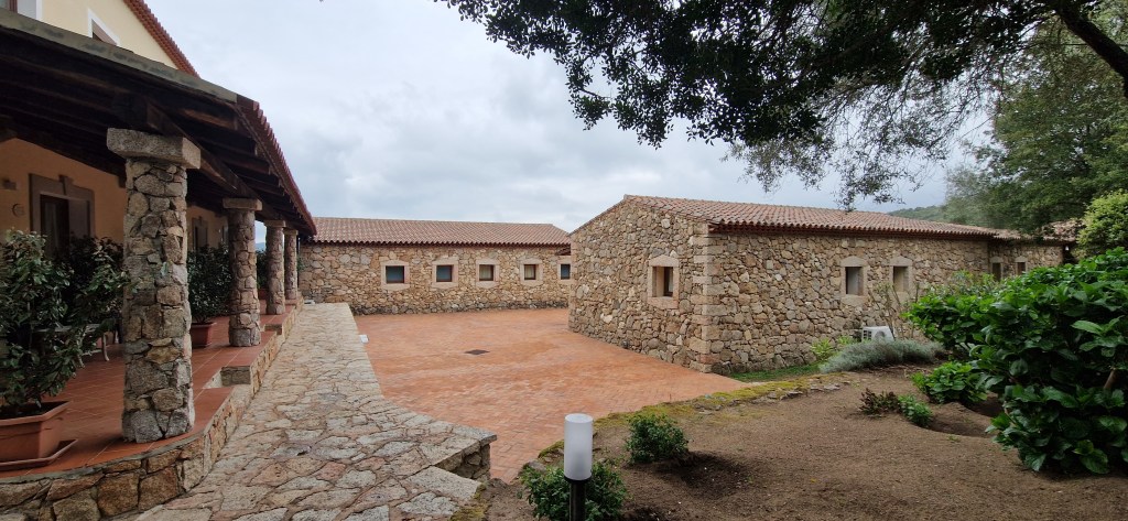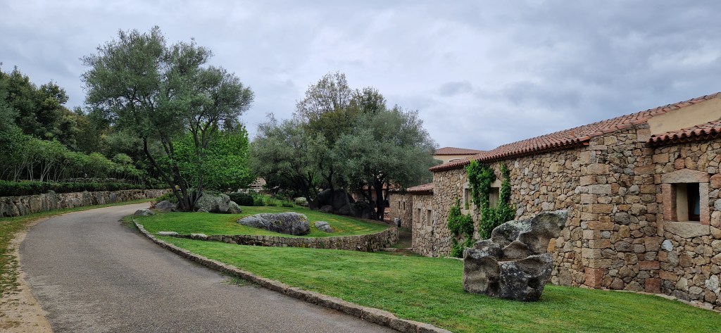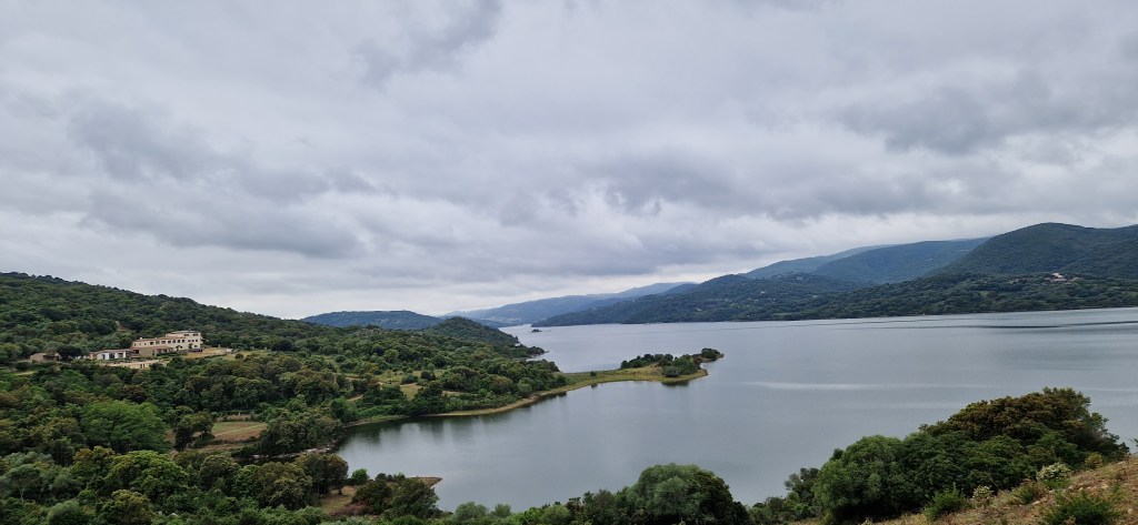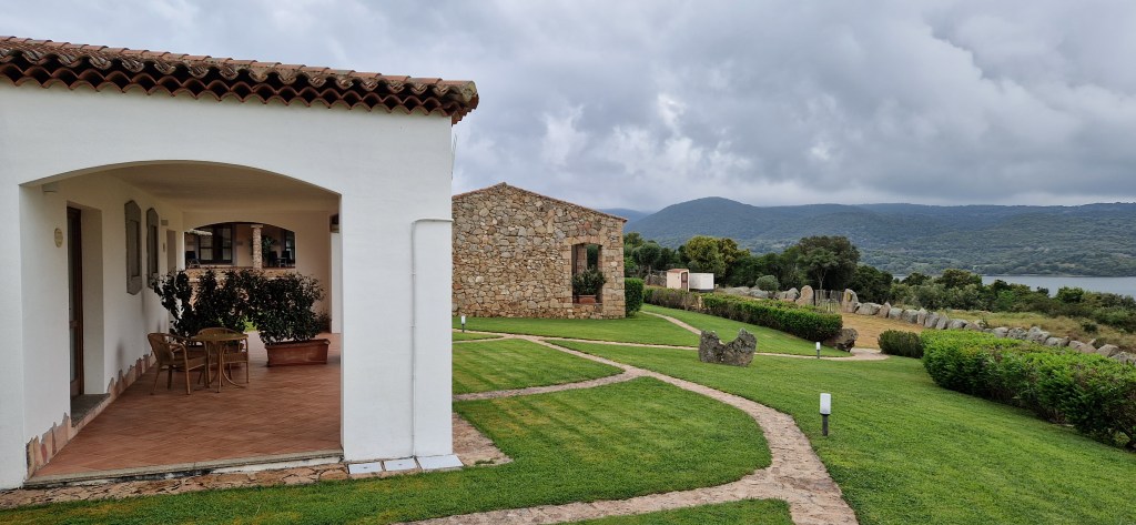 Ab jetzt sind wir also alleine unterwergs. Selber navigieren, für schöne Pausenorte sorgen etc…. Vom Hafen waren es noch ca. 40 km zu unserem Hotel Valkarana (www.valkarana.com). Die Anfahrt führte uns durch einsamste Gegenden, so dass ich schon dachte wir hätten uns verfahren. Aber dann tauchte es in der Ferne auf, mit herrlichem Blick auf den Lago del Liscia. Das Hotel ist ein Schmuckstück mitten im Nirgendwo.