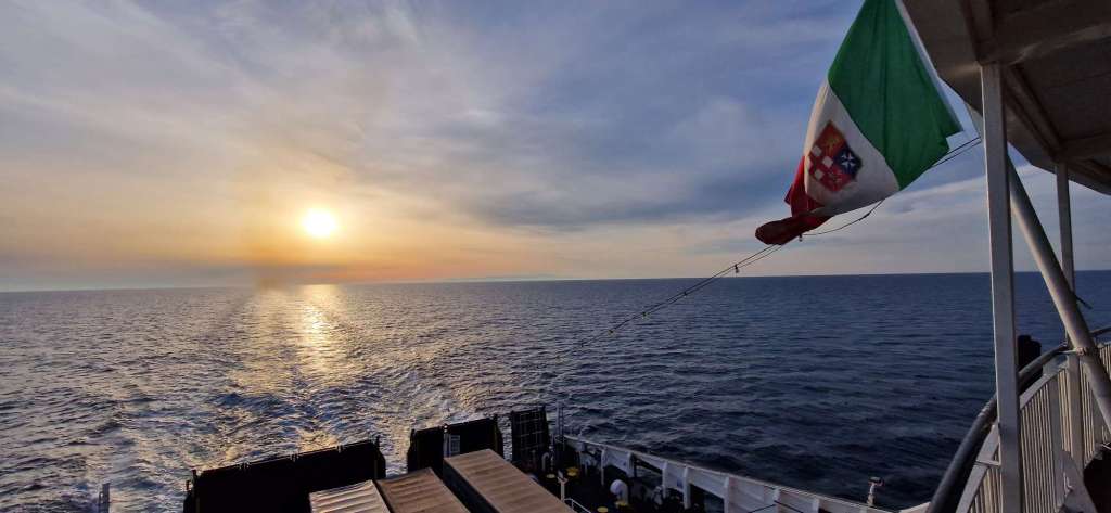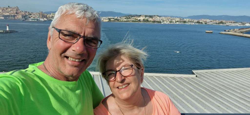 Zu guter Letzt noch ein Gelato und dann ab zum Hafen und warten bis sich die Schranken der Fähre öffneten. Punkt 17 Uhr legte die Fähre ab und bei einem Bier in der Abendsonne sagten wir Goodby Sardegna.