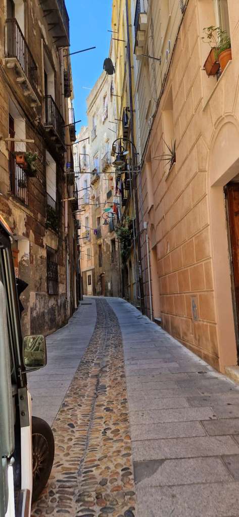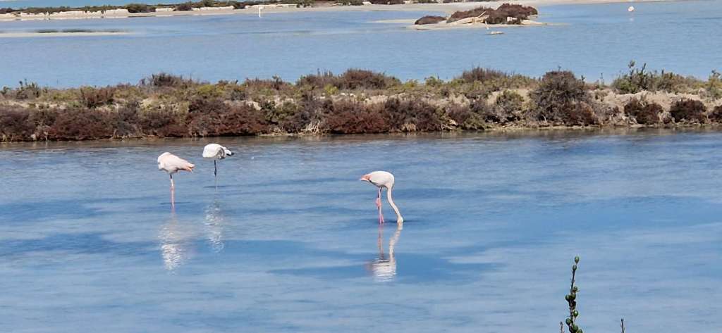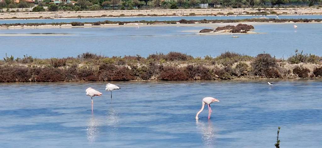 Der Verkehr Richtung Cagliari hat heute um einiges zugenommen. Auffallend viele „Gümmeler“ sind unterwegs. Als wir an der Lagune vor Cagliari vorbei fuhren, entdeckten wir unzählige Flamingos.