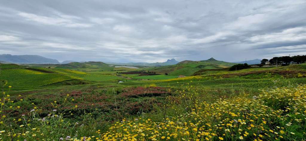 Etwa 30Km nach Palermo wurde das Gelände hügelig und wenig besiedelt. Aggrarwirschaft dominiert das Bild und beidseitig der Strasse blühen die schönsten Blumen. Mit diesen Eindrücken gondelten wir durch die Gegend.