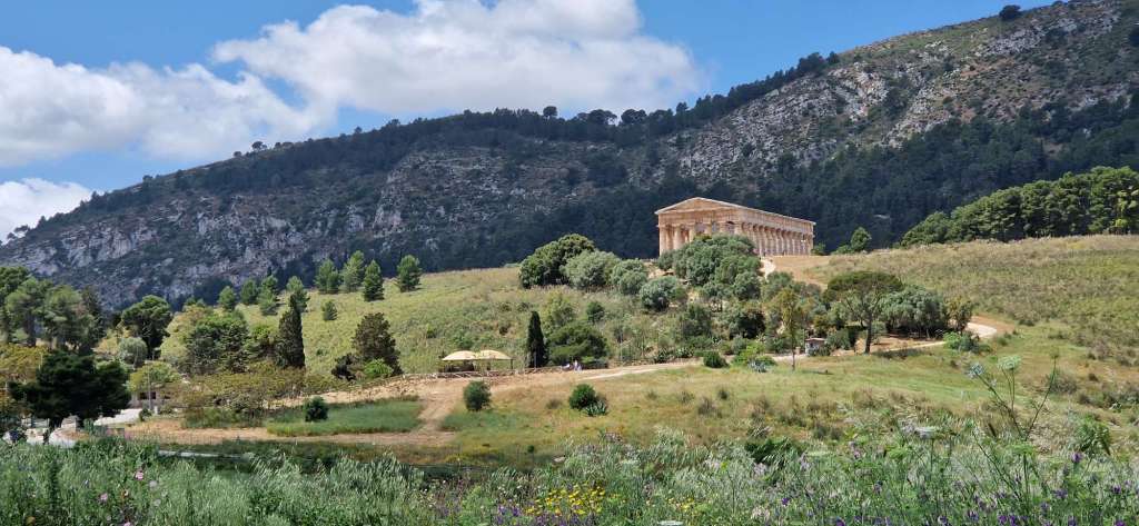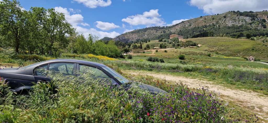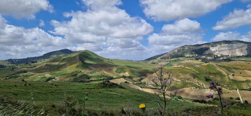Kurz nach Trapani wichen die Häuser dem Aggrarland. Olivenbäume, Reben, Gemüse usw. wird angebaut und bewirtschaftet. Einsam fuhren wir durch malerische Gegenden, welche sich im Sonne-und Wolkenspiel immer wieder veränderten. Wie schon in den letzten Tagen, waren auch heute die Strassen links und rechts mit einem üppigen Blumenmeer tapeziert.
