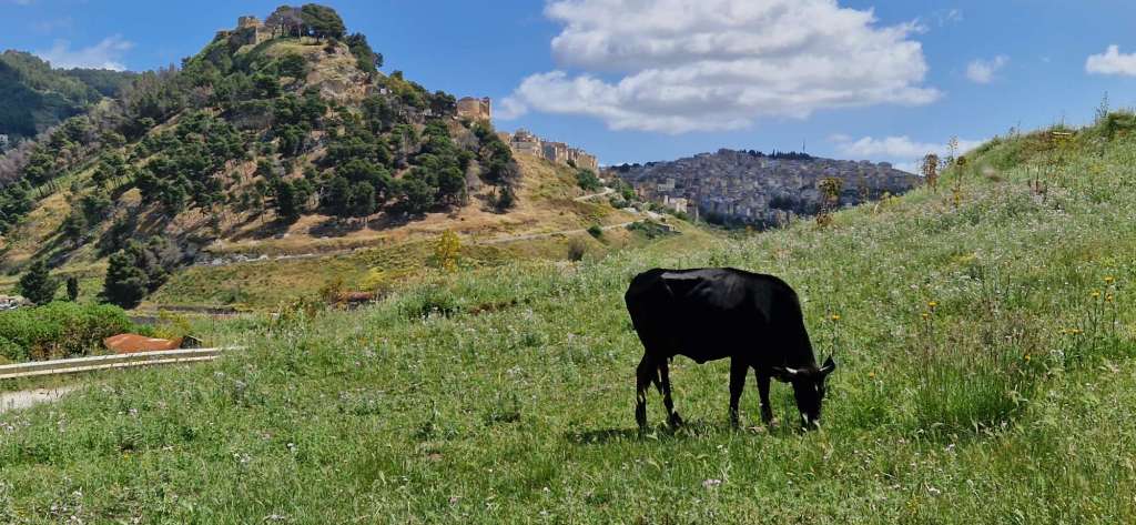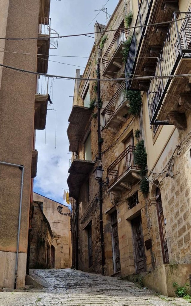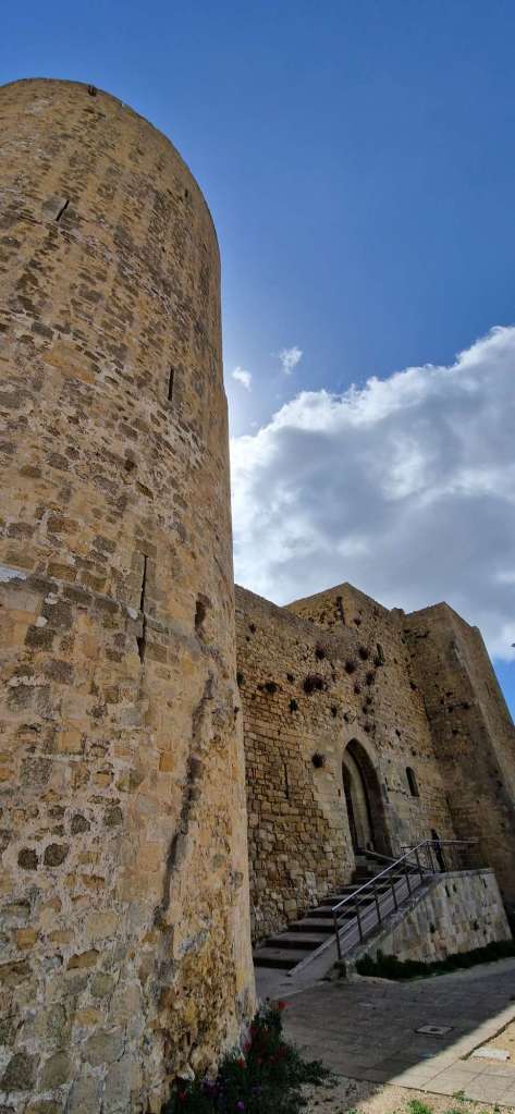 In Salemi, zeigten die Schilder nach rechts und die Pfeile auf dem Navi wiesen nach links. Kurze Pause um die definitive Richtung zu bestimmen. Schon kam ein Einheimischer auf uns zu, fragte woher wir sind und wohin wir gehen….und dann kamen im Sekundentakt Vorschläge und Routenanweisungen, gepaart mit vielen Gesten….einfach italienisch. Einer seiner Tipps war die Burg in Salemi, welche vom Dorfzentrum einfach zu erreichen war. Inzwischen kennen wir das…engste, steile Strassen aus aalglatten Marmorsteinen…Der Besuch hat sich auf jeden Fall gelohnt.