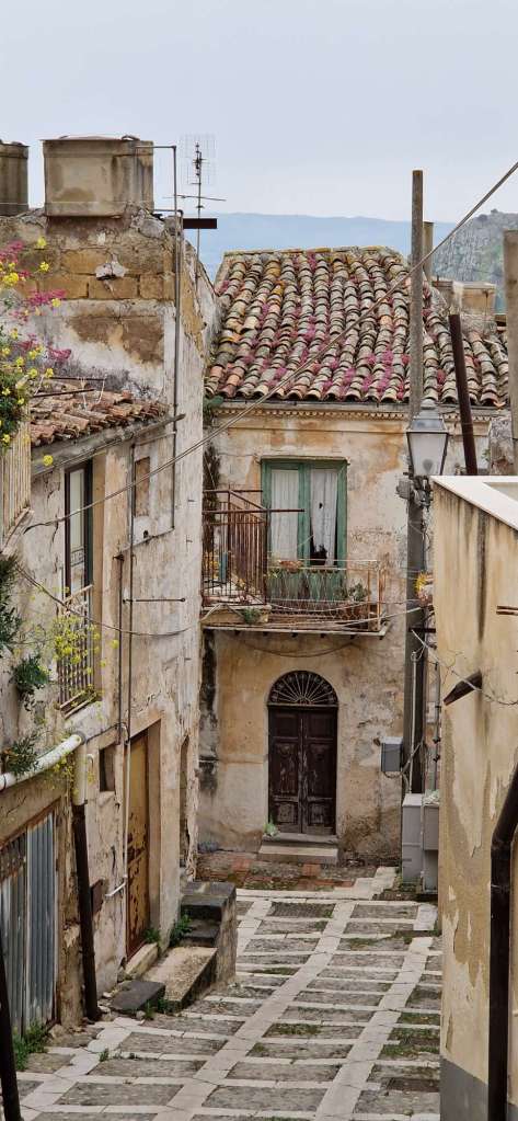 Dann halt nicht…so peilten wir den nächsten Haltepunkt an. Sutera, ein mittelalterliches Dorf names „Balkon Siziliens“. Der Weg dahin war jedoch recht abenteuerlich. Der Regen brachte Dreck und Steine von den Feldern auf die Strassen. Zum Teil lagen riesige Pfützen vor uns, welche mit erhobenen Füssen durchquert werden mussten. Schade konnten wir uns in dieser Position nicht fotografieren.