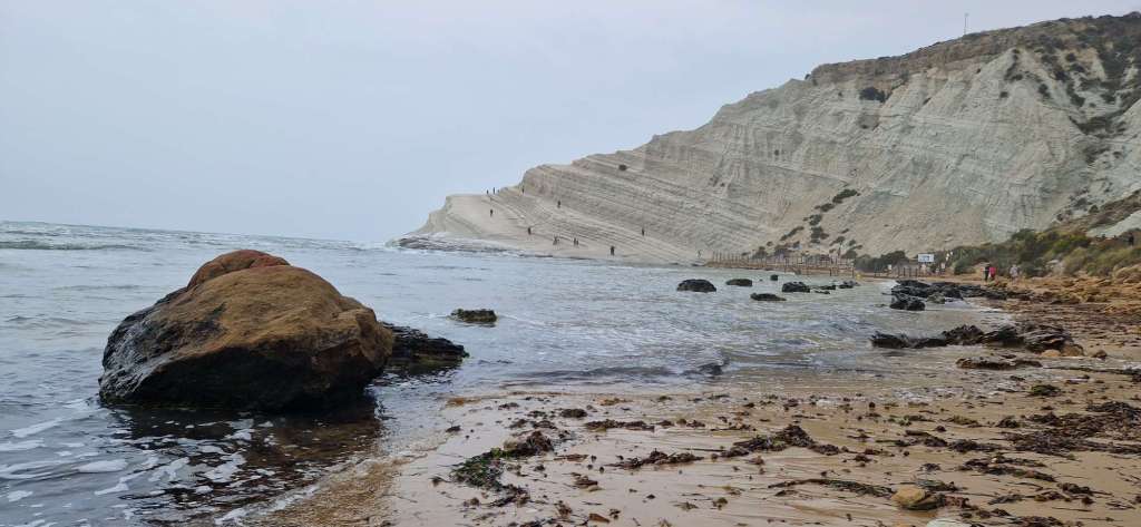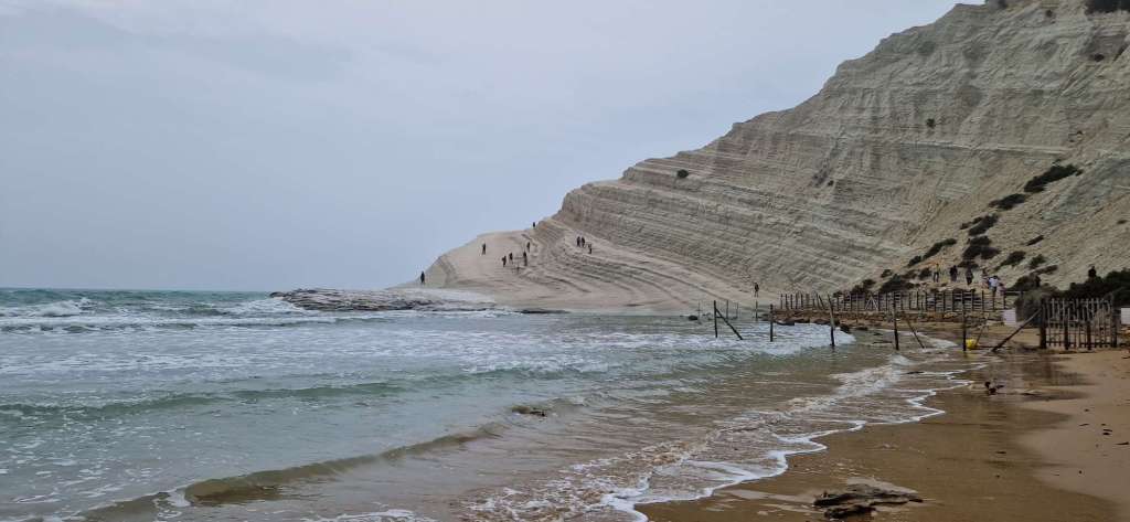 Heute stand ein weiterer Touristen-Meilenstein auf dem Programm…die Scala dei Turchi. Ein aus Mergel bestehender, strahlend weisser monumentaler Felsen. Eigentlich ist der Zugang abgesperrt, aber wenn alle Zäune niedergetrampelt werden, dann ist der Weg wieder frei.
