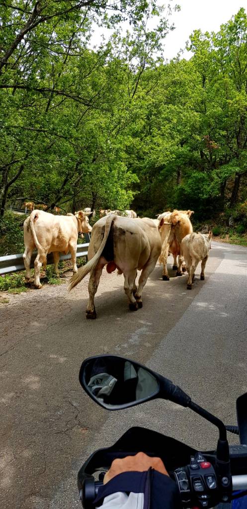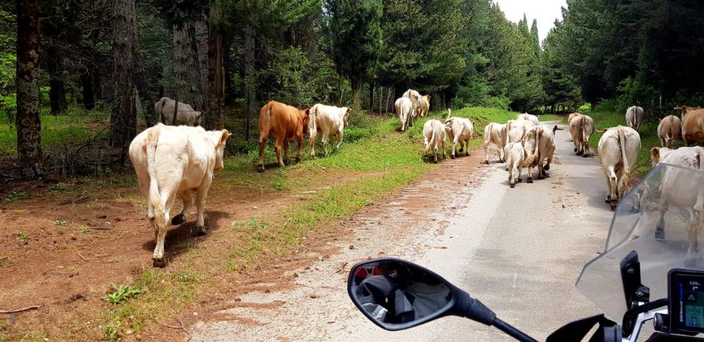 Den ersten Haltepunkt, Stausee Lago Ancipa, erreichten wir aber schon mit deutlicher Verspätung…eine Kuhherde übersiedelte auf eine andere Weide…notabene mehrere Kilometer. Der Bauer fuhr mit dem Auto hinter der Herde her und erklärte uns, dass die Kühe recht schreckhaft seien und bat uns deshalb nicht zu überholen. Rechtschaffene Eidgenossen befolgen natürlich diesen Wunsch…doch als dann einige Rindviecher die Strasse verliessen und in den Wald spazierten, da verlor auch der Agronom die Contenance und winkte uns vorbei.