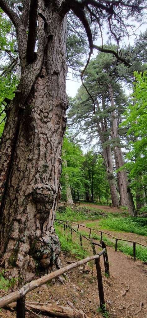 Da der Himmel recht trüb war, entschieden wir uns nur für eine kurze Runde. Die Hauptattraktion heute waren die Giganten von Sila. In diesem uralten Waldgebiet befinden sich mehr als 60 kalabrische Kiefern und Platanen, die im 17. Jahrhundert von der Freiherrenfamilie Mollo gepflanzt wurden. Diese Bäume haben einen Durchmesser von 1m bis 2m und eine Höhe von 45m. Beeindruckende Zeitzeugen…ich hoffe, dass meine kürzlich gepflanzten Bäume ein ebenso stattliches Alter erreichen 🤔.