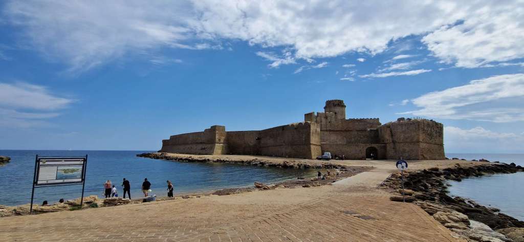 Capo Rizzuto ein sehr schöner touristischer Ort. Praktisch von allen Restaurants oder Bars sieht man auf das Castello Aragonese aus dem 16. Jahrhundert.