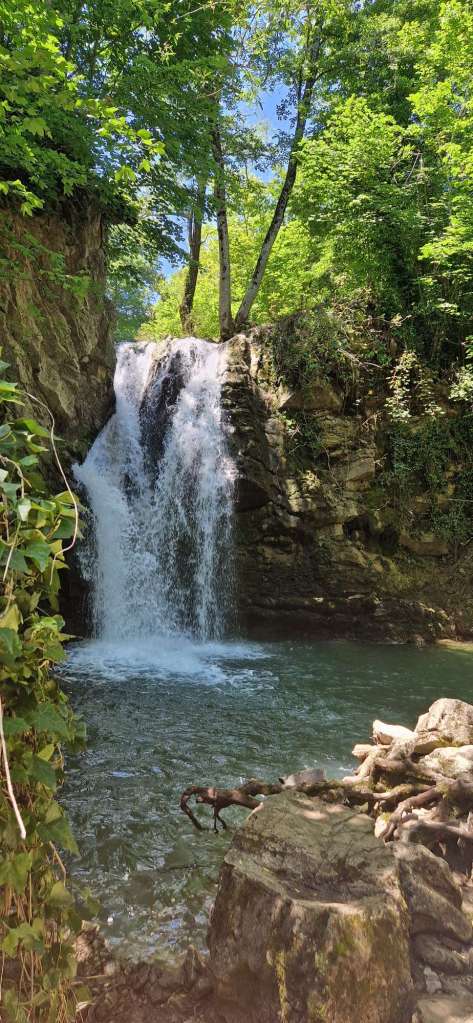 Der erste Höhepunkt unserer Tagestour waren die weltberühmten Wasserfälle von San Fele. Wer kennt sie nicht!!! (gell Sandro)😀. Auf einem schön gemachten Weg, kann man dem Wasserlauf folgen und sieht dabei einige Wasserfälle. Will man Wasserfälle beobachten, muss man Höhenunterschiede überbrücken. Mit anderen Worten…der Retourweg ging bergauf. Mit den Motorradkleidern fühlte sich das ganze an wie im Fitnessstudio. Einziges Manko…Montag = Ruhetag in den meisten Restaurants und Bars. Das akute Durstproblem konnte, nach längerem Suchen einer geöffneten Lokalität, doch noch behoben werden.