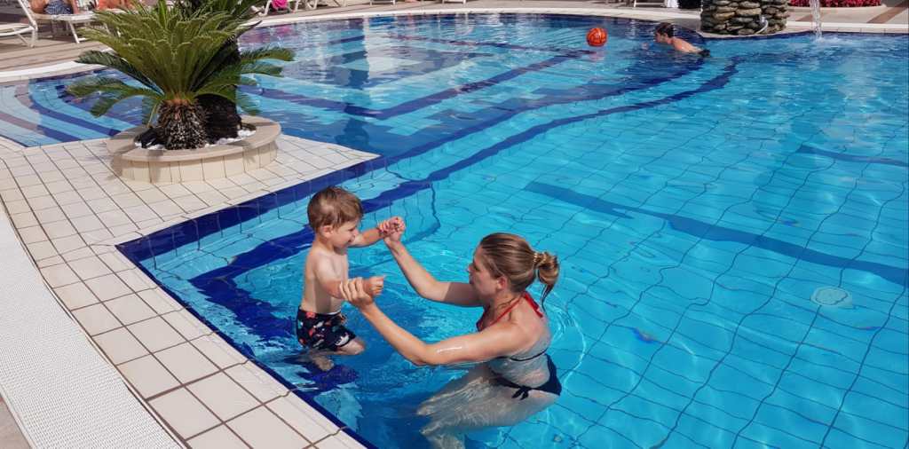 Nach dem Begrüssungszeremoniell, wollte Leandro (Enkel) beim Anblick des Pools, relativ zügig ins Wasser gehen.