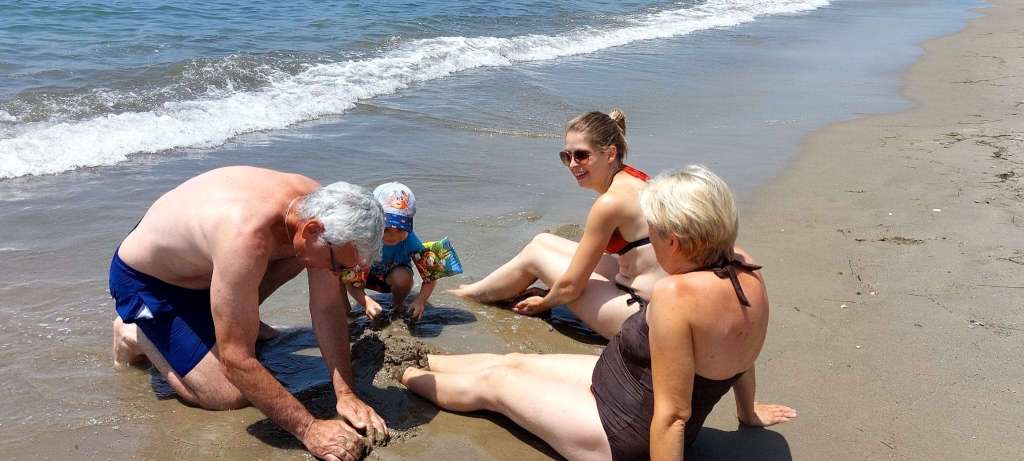 Am Meer wurde heute den ganzen Nachmittag Burgen und Berge gebaut, Löcher gegraben, Sand und Steine vom Meer an Land und umgekehrt befördert.