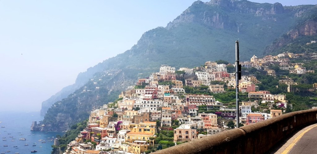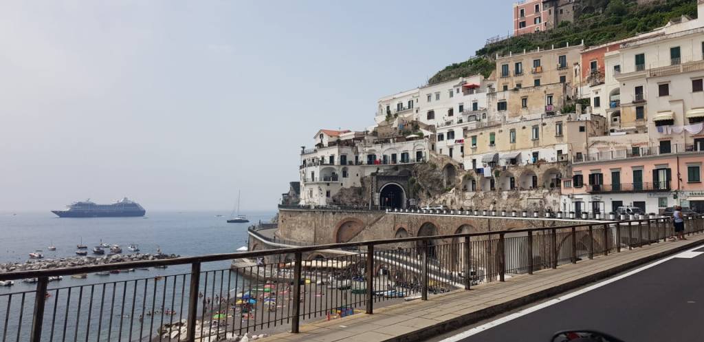 Heute fuhren wir der wunderschönen Amalfiküste entlang nach Napoli. Die Küstenstrasse muss wohl ein Highlight gewesen sein, als es nur Fiat Cinquecento, Autobianchi und Ape gegeben hat. Heute, mit den SUV’s und deren nicht kurvenkundigen Fahrern, Reisecars und Lastwagen, ist die Fahrt eher eine Qual. Die Aussichtspunkte gaben heute auch nicht viel her, da die Luft recht dunstig war.