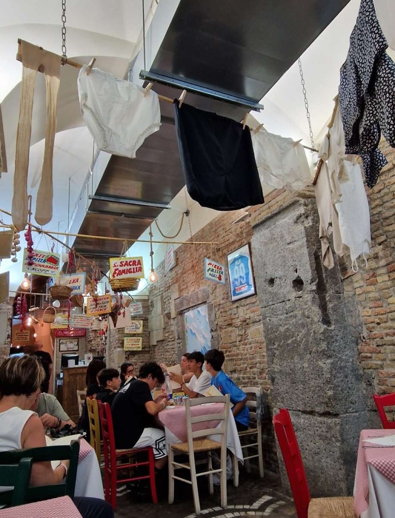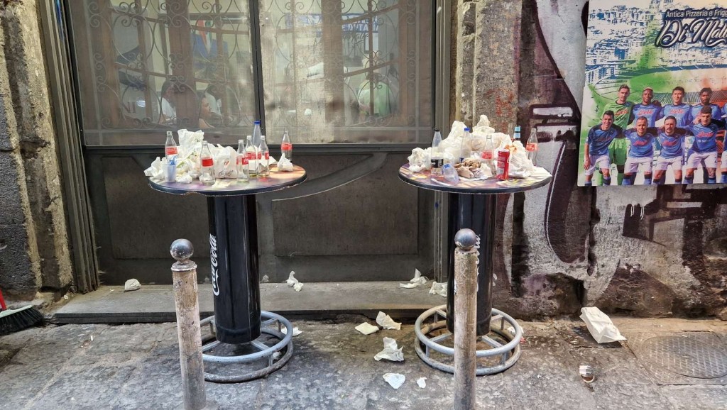 Folgende Eindrücke kamen zusammen…Für den Touristen ist Napoli eine chaotische Stadt, aber für die Neapolitaner hat es eben doch eine Ordnung. Die Stadt ist voll von Einheimischen jeglichen Alters, welche flanieren, einkaufen oder in Bars sitzen. Zusätzlich waren 4 Kreuzfahrtschiffe zu Besuch und auch diese Spezies fand Platz.
