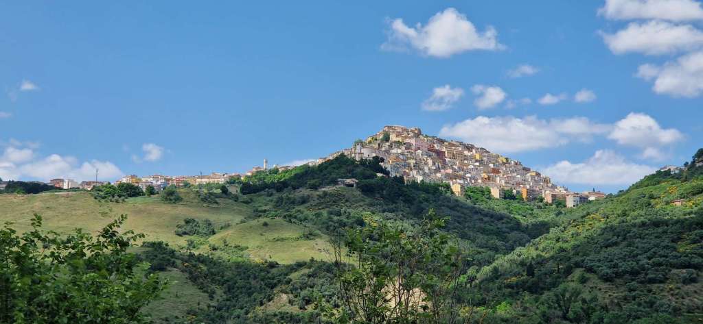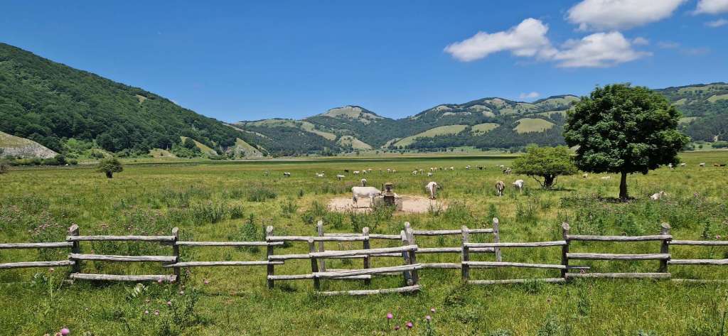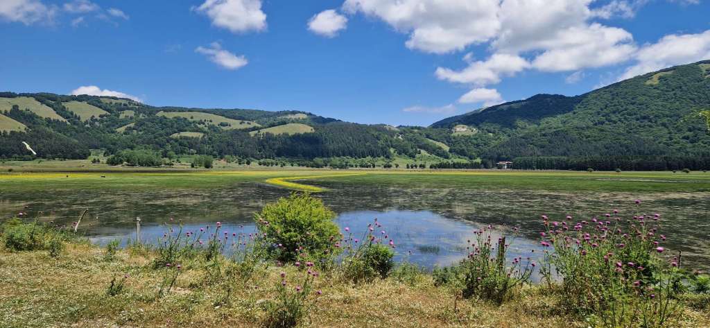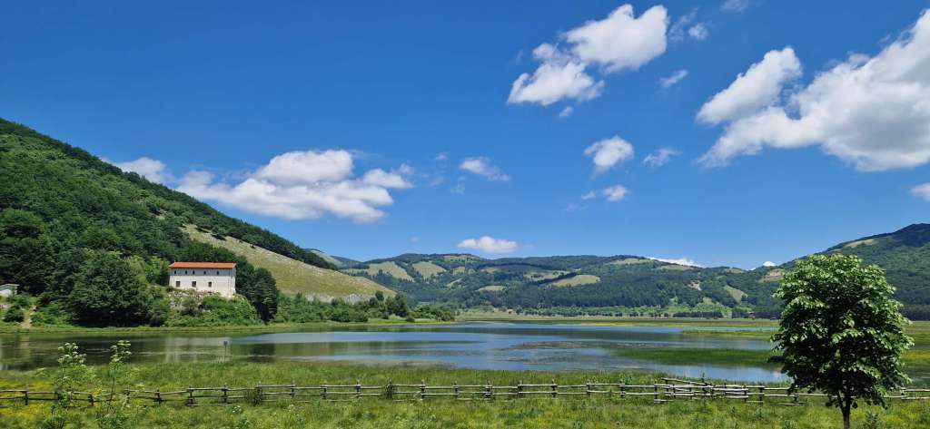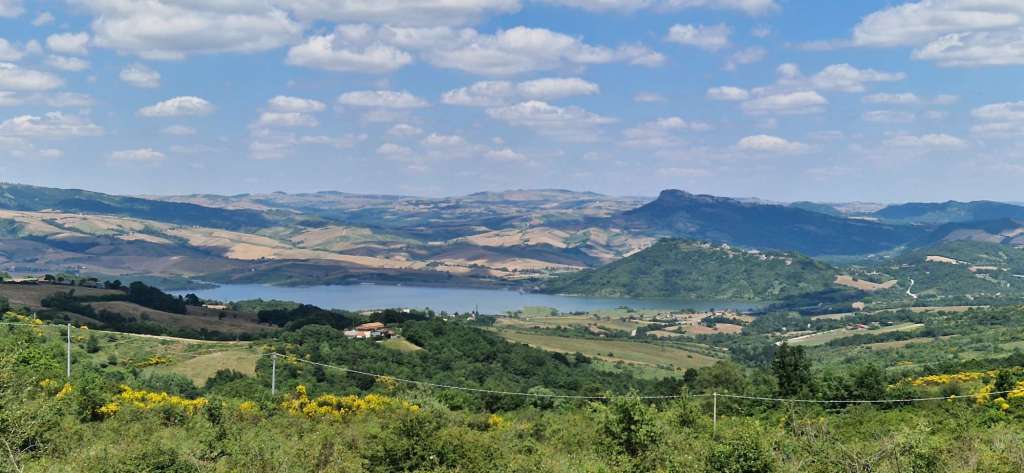 Am Stadtende lockerte sich der Verkehr und mit etwas mehr Tempo, war auch die Temperatur zu ertragen. Avellino liessen wir links liegen und fuhren am Rande des Parco Regionale Monti Picentini zum Lago Laceno auf 1000 m.ü.M. Ein grosser Teil des Sees ist Sumpfgebiet in dem sich sehr viele Kühe aufhalten. Ausserdem gibt es grössere Hotelanlagen, welche auf Wintertourismus hinweisen.