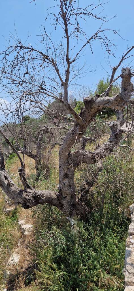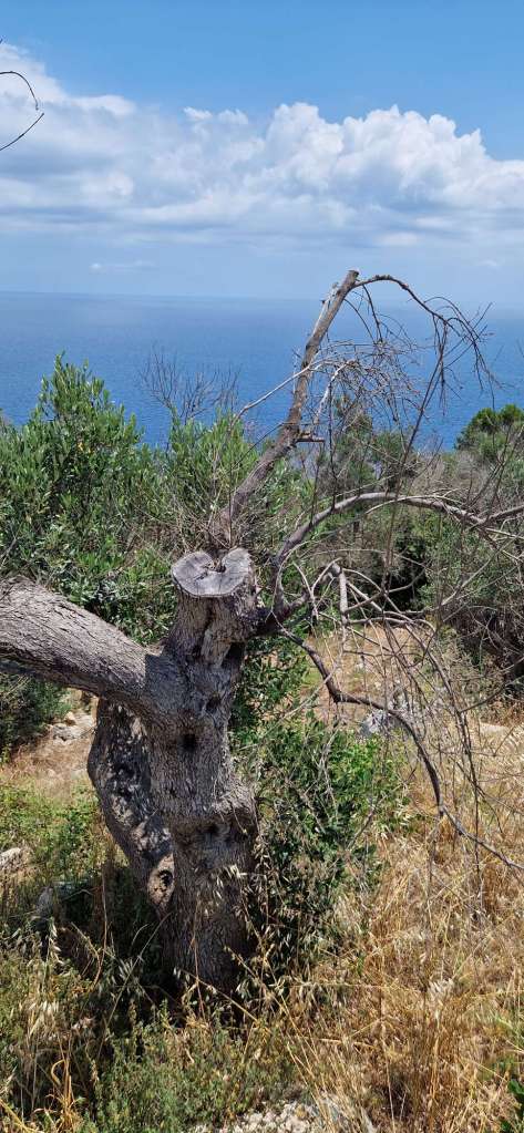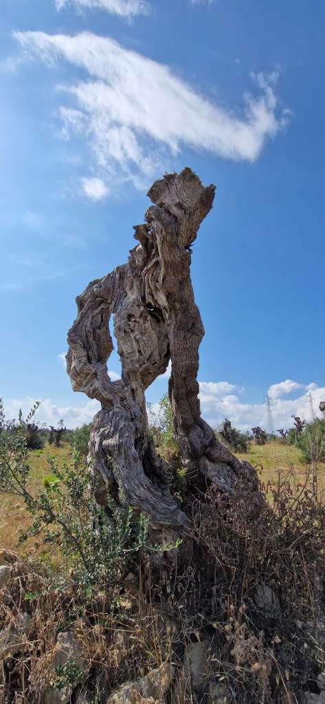 Was wir gestern schon beobachteten, sahen wir heute wieder. Kilometerlange Olivenplantagen, welche nur noch dürre Bäume hatten. Zum Teil wurden sie abgebrannt und ausgerissen, oder einfach bis zum Stamm gestutzt. Recherchen ergaben, dass ein eingeschlepptes Bakterium die Bäume befällt und den Nährstofftransport blockiert. Die befallenen Bäume sterben letztendlich durch Wassermangel.