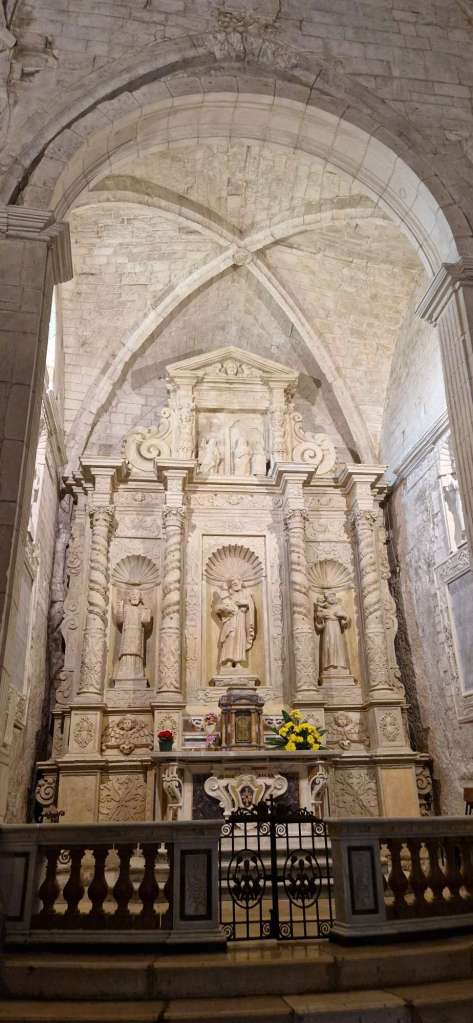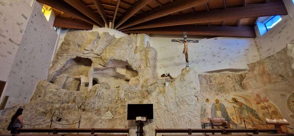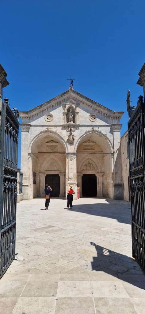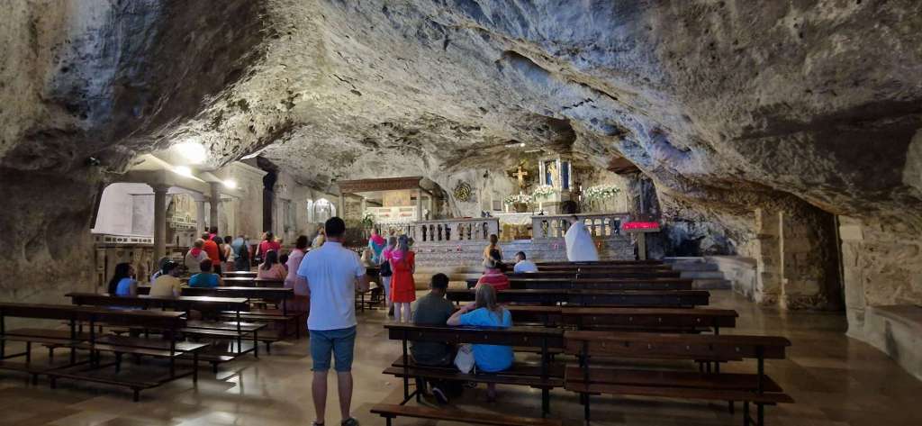 Die Kirche San Michele ist eine Grottenkirche. Oben ist nur der Glockenturm und die zweiteilige Eingangshalle zu sehen. Die Kirche selbst liegt im Inneren des Berges. An diesem Ort erschien, der Legende nach im Jahr 492, der Erzengel Michael den Hirten.