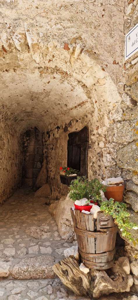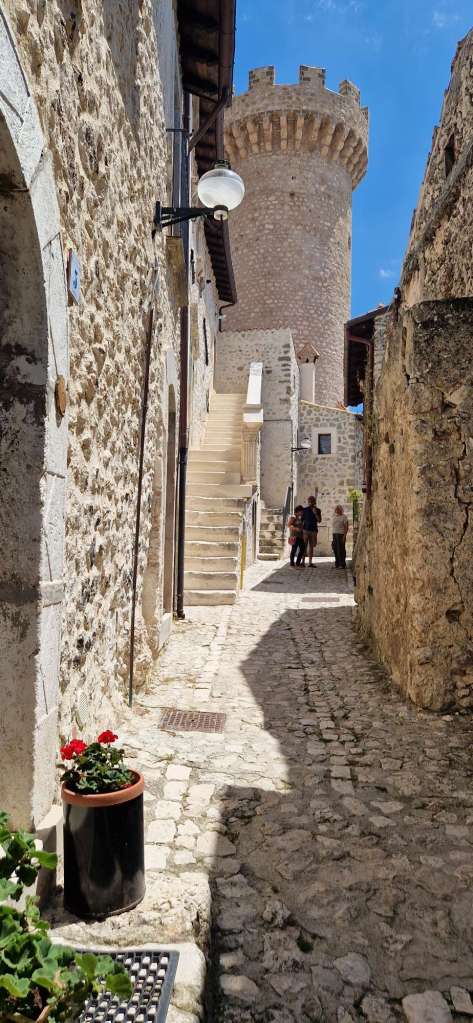 Zweite Anlaufstelle war Santo Stefano di Sessanio, mit 1250 m.ü.M. das höchstglegene Dorf in Italien. Mit rund 100 Einwohnern ist es recht dünn besiedelt, aber der Ort hat Investoren gefunden, welche mit der Renovierung von Gebäuden den Tourismus wieder auf die Beine helfen wollen. Im Moment sieht man einige schön restaurierte Häuser, aber in der Mehrzahl ist das ganze Dorf voller Gerüste.