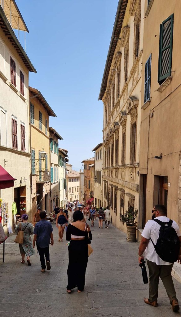 Heute besuchten wir die Weinstadt Montepulciano. Von hier stammt der Rotwein Vino Nobile di Montepulciano und nicht etwa der Montepulciano d’Abruzzo. Der Unterschied liegt in der Rebsorte und dem Anbaugebiet.