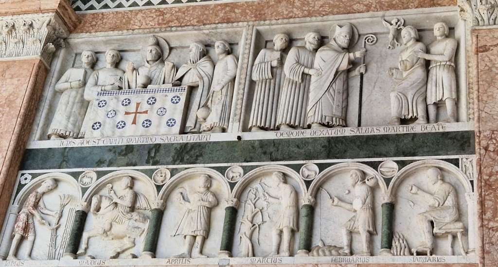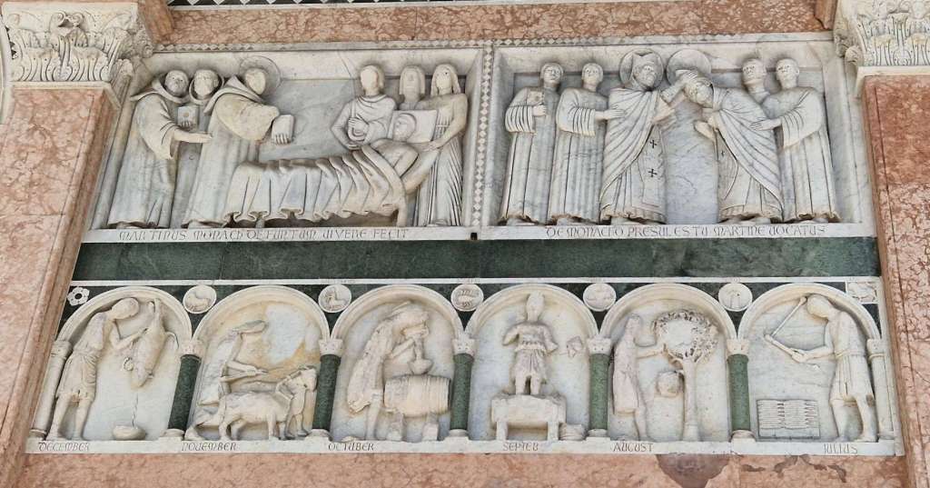 Zu guter Letzt sahen wir noch den Duomo di San Martino. Ein Steinmetz nahm sich die Zeit um die Tätigkeiten pro Monat in Stein festzuhalten.