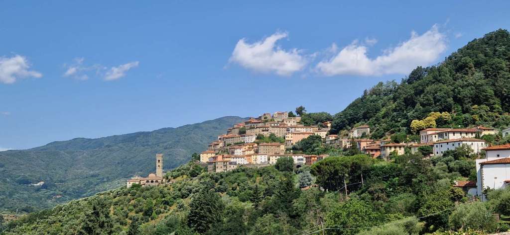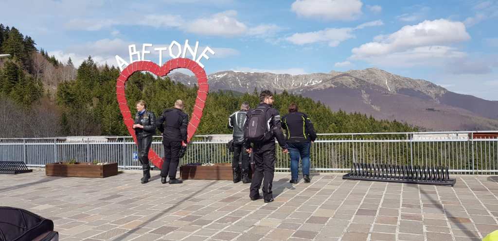Vor drei Monaten fuhren wir die Strecke in umgekehrter Richtung nach Livorno. Damals hielten wir in Abetone (1400m.ü.M) an und machten ein Foto. Im ganzen waren vielleicht 30 Personen auf dem Parkplatz zu sehen. Heute wimmlete es nur so von Motorradfahrern, Mountain-Biker, Wanderer usw. Schon weit vor dem Parkplatz war alles voll. Oben im Ort gab es keine Chance ein Parkplatz zu finden, geschweige denn ein Foto zu machen.