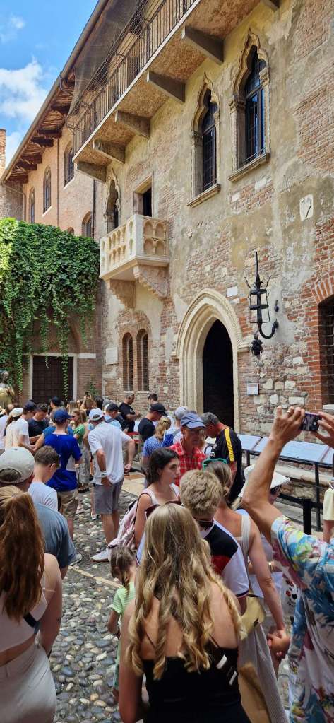 Was zu Verona gehört wie die Luft zum atmen ist der Balkon von Julia, aus dem Roman Romeo und Julia…klar das wir den auch sehen wollten…mit tausend anderen zusammen…schön brav in der Reihe anstehen und im Gänsemarsch am Balkon vorbei…