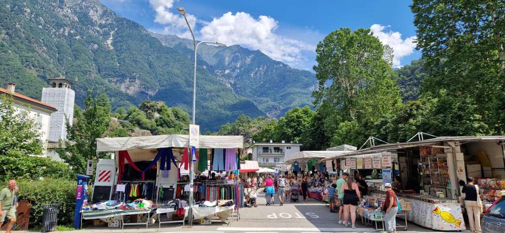 Nach einer kurzen Nacht ging es zeitig los. Grund dafür war der Markt in Chiavenna, der um 13 Uhr schliesst. Dort hatten wir im letzten Jahr nach der Splügenwanderung italienische Spezialitäten eingekauft. Weil die alle so schmackhaft waren und wir den Splügenpass nun mit anderen Augen sehen, lag es auf der Hand hier noch einmal einen Halt zu machen, bevor es definitiv nach Hause geht.