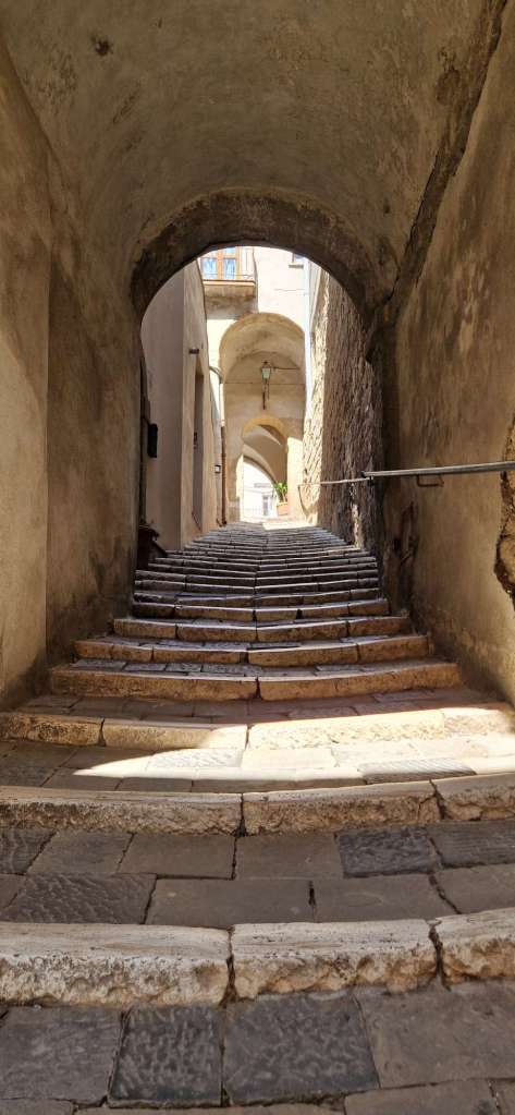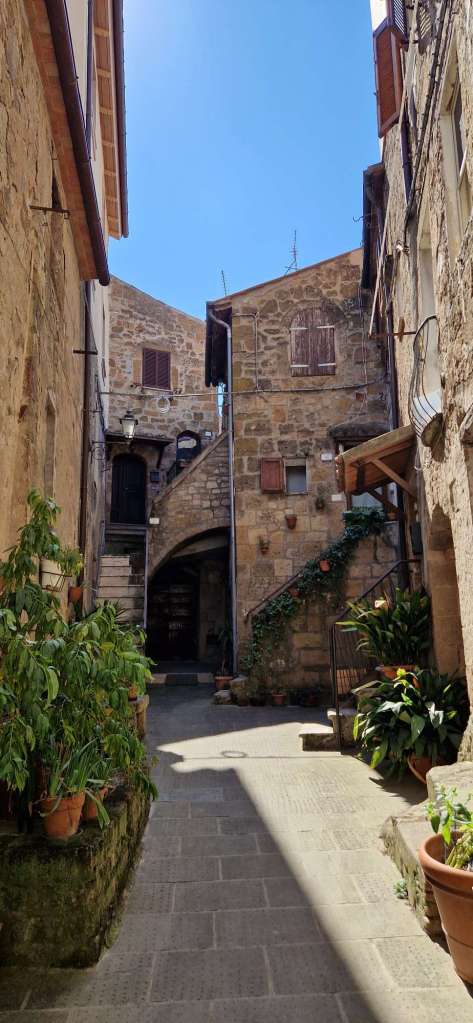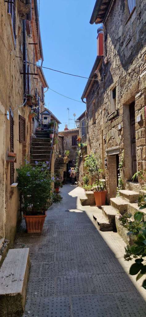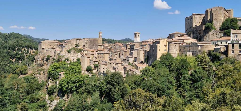 Die anschliessende Fahrt führte uns nach Sorano. Genau wie Pitigliano auf Tuffsteinfelsen gebaut und von Schluchten umgeben.