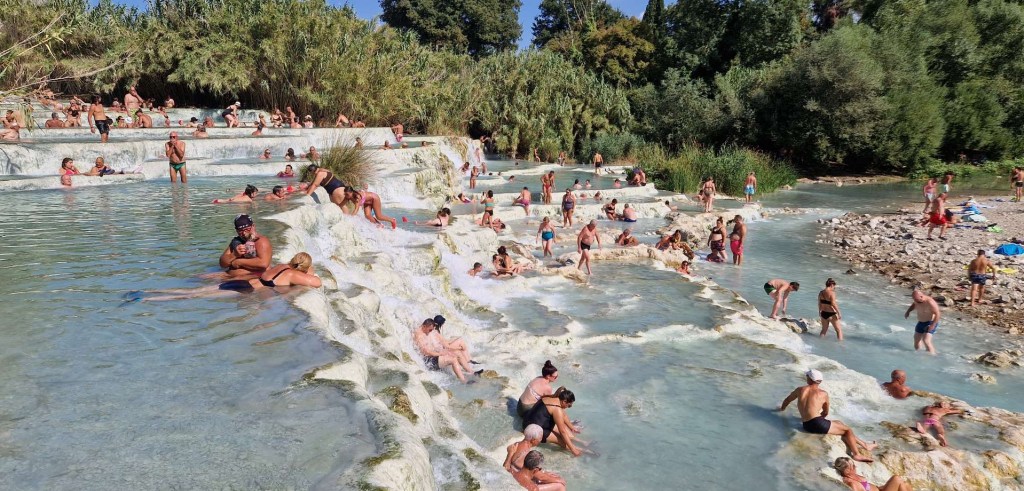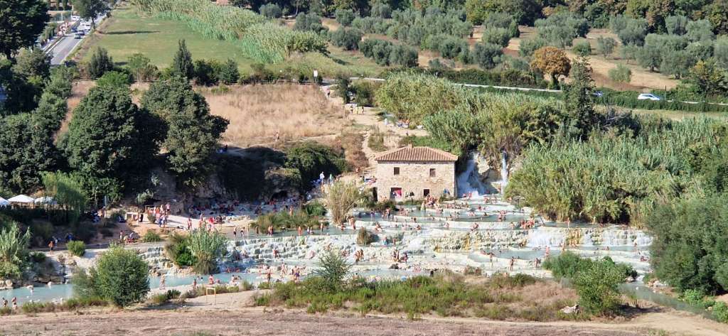 Letzte Station des Tages waren die warmen Quellen von Saturnia. Die Therme Saturnia ist eine der ältesten Thermen der Toskana und geht auf die Römerzeit zurück. Der Schwefelgeruch in der Luft deutete die Thermalquellen schon einige hundert Meter vorher an.