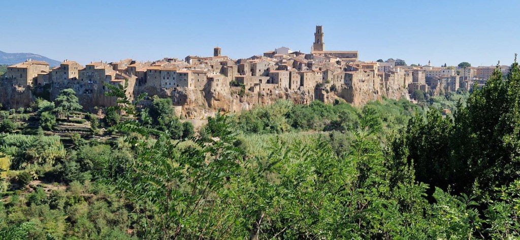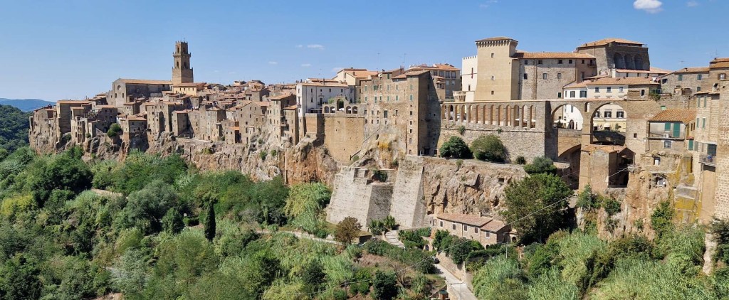 Pitigliano, ist auf einen ca. 300m hoch gelegenen Tuffsteinfelsen gebaut und ist umgeben von tiefen Schluchten.