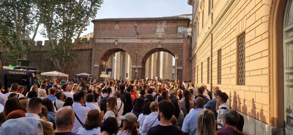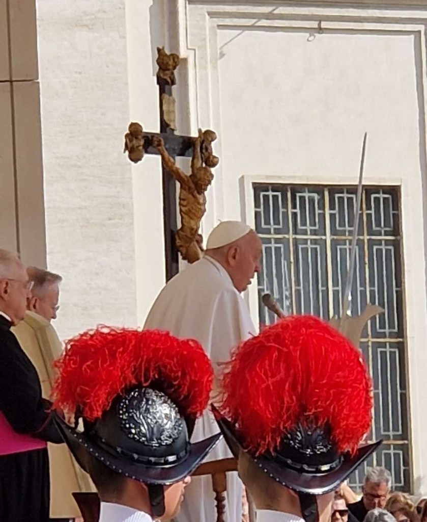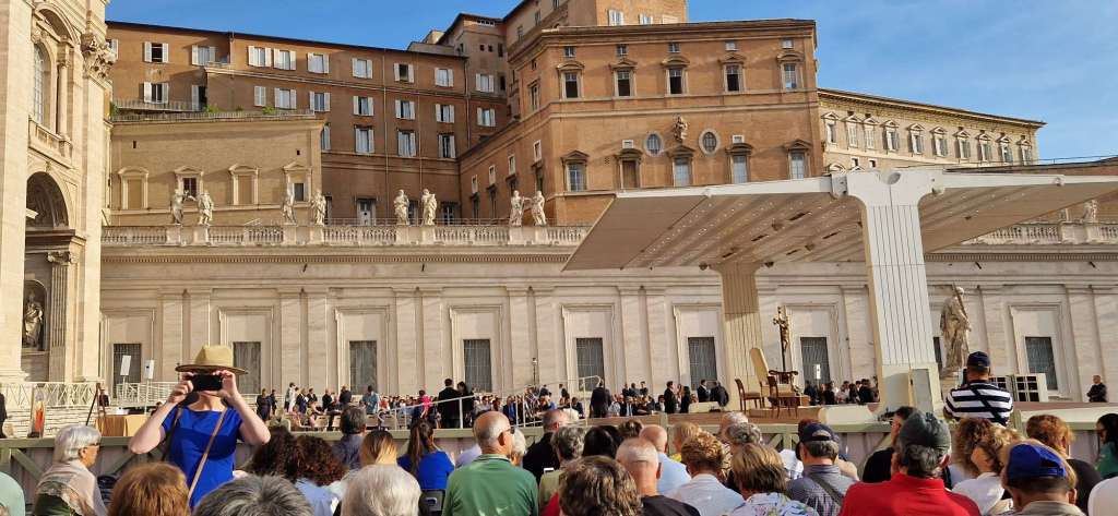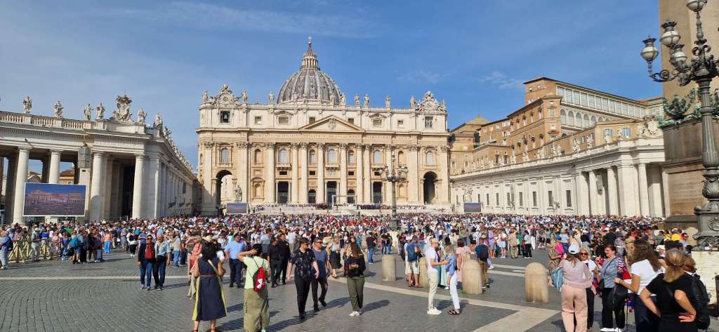 Heute morgen mussten wir sogar vor der Türe des Frühstückraumes warten…diese öffnete erst um 07.00 Uhr. Wir waren jedoch nicht die Einzigen, welche es eilig hatten. Grund dafür war der Mittwochmorgen, an dem um 09.00 Uhr die Papstaudienz stattfindet.