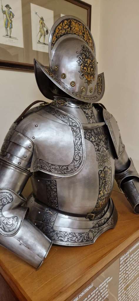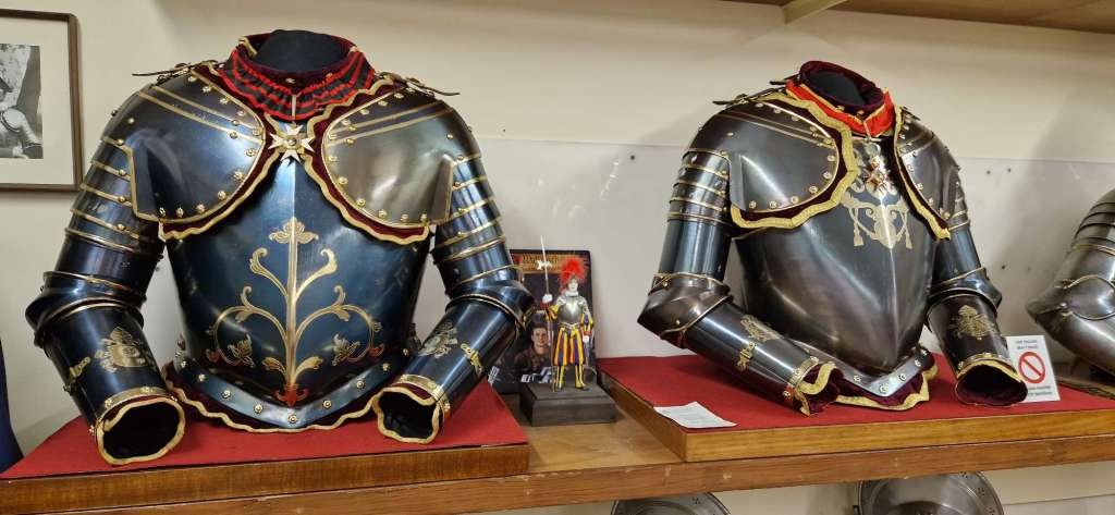 Ganz interessant war der Gang in die Waffen- und Ausrüstungskammer. Hier lagern historische und aktuelle Uniformen und Waffen. Interessant waren die Harnische die 500 Jahre alt sind. Von 2010 bis 2018 wurden 80 Stück neu geschmiedet.
