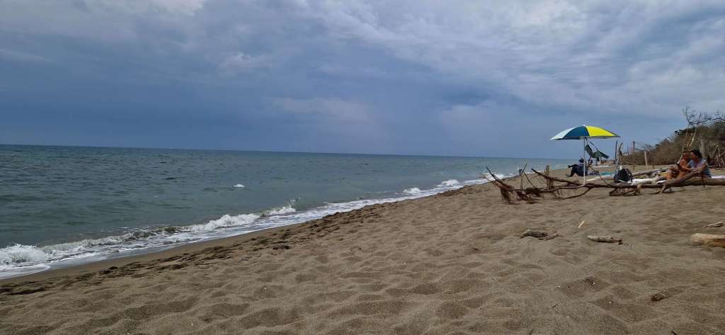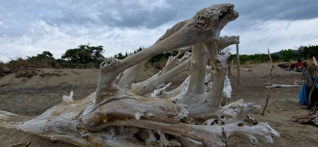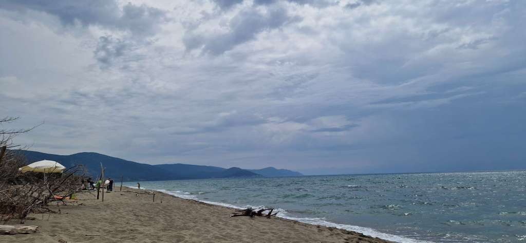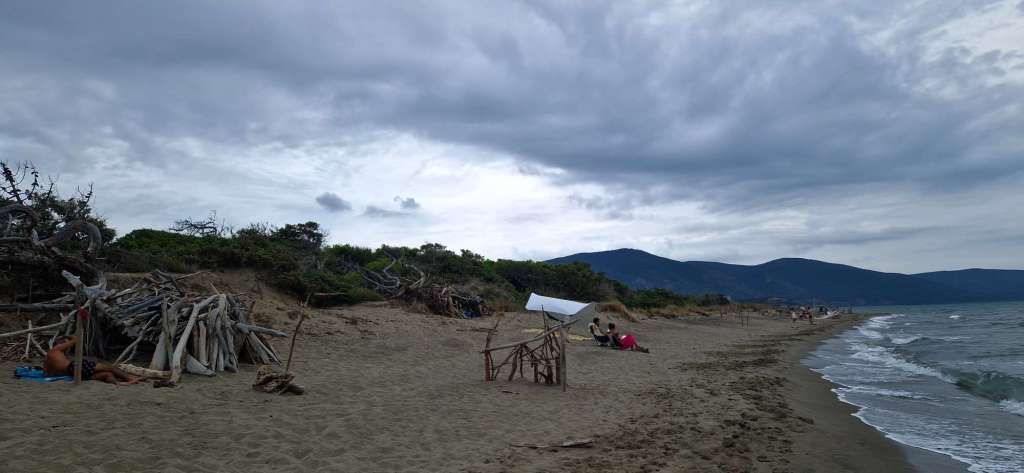 Am Nachmittag fuhren wir zum Strand von Albarese, welcher im Nationalpark der Maremma liegt. Am kilometerlangen Sandstrand findet man viel Treibholz, welches dazu benutzt wird ein schattenspendendes Dach zu bauen…sonst gibt es nichts…keine Liegen…keine Bar…keine Sonnenschirme und zum Teil auch keine Badekleider😳.