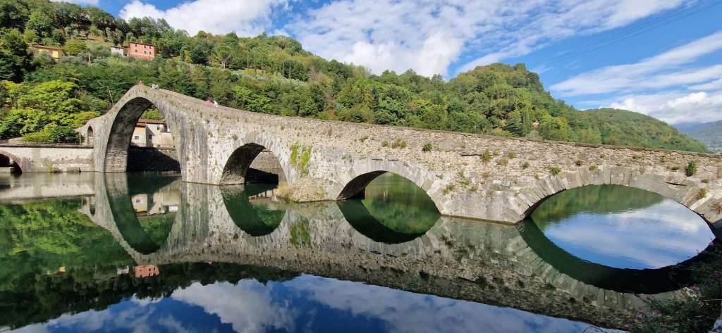 Bei Borgo a Mozzano bestaunten wir die Ponte della Maddalena aus dem 14. Jahrhundert, die den Fluss Serchio überquert. Die Brücke war Teil der Via Francigena, die Pilger von Frankreich her, auf ihrem Weg nach Rom zur Grabstätte der Apostel Petrus und Paulus, nutzten.