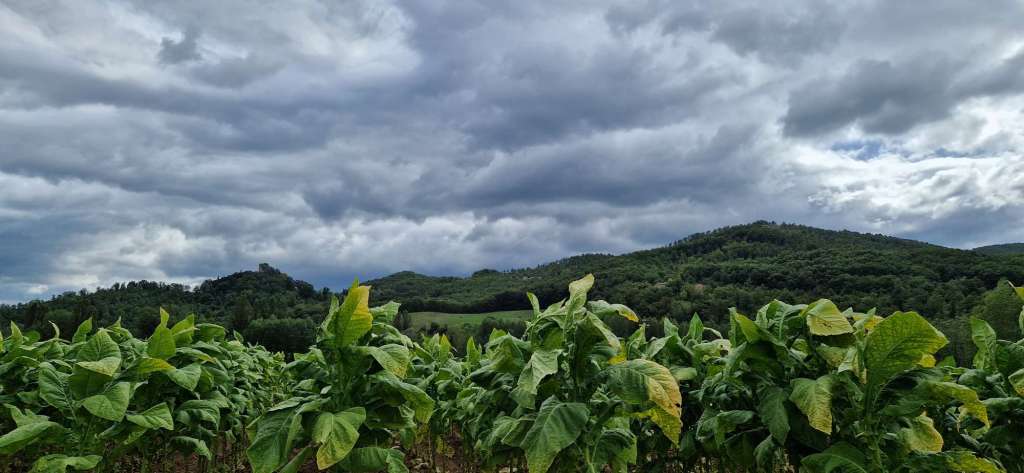 Auf der weiteren Fahrt fielen uns kilometerlange Felder mit grossblättrigen Pflanzen auf…Einige Felder abgeerntet, andere im Blütenstand und wieder andere als Jungpflanzen…Weder die Weltbeste Sozia noch ich hatten eine Ahnung um was es sich hier handelt. Doch Google sei Dank, es gibt ja Flora Incognita. Die App informierte uns, dass es sich bei diesen Feldern um Tabakpflanzen handelte…wieder etwas gelernt.