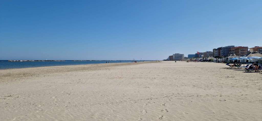 Man glaubt es kaum, aber die Strände an der Adria sind praktisch leer. Schönster Sonnenschein, 28 Grad Luft- und etwa 23 Grad Wassertemperatur, aber fast alle Hotels und Strandbars sind geschlossen. Keine kilometerlangen Sonnenschirm-Paraden…Gut für uns…