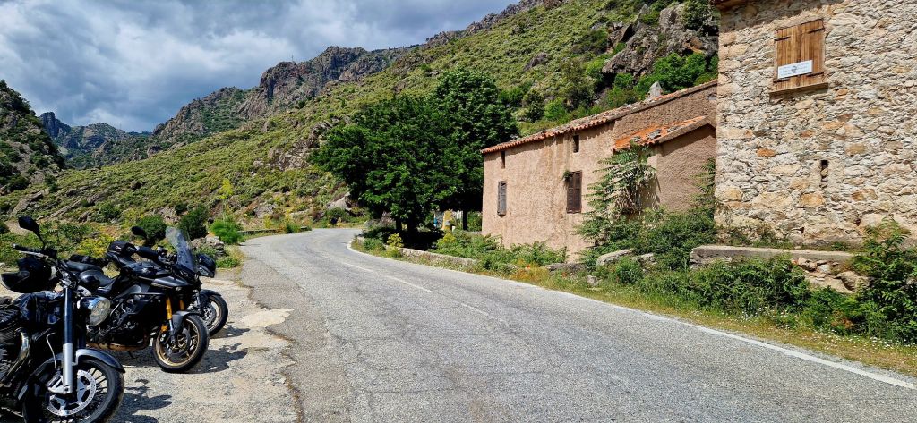 Nun zum heutigen Tag. Ziel war die Zitadelle von Corte. Der Weg dahin führte uns über den Col de Vergio, mit einer Passhöhe von 1470m. Man wird es kaum glauben, aber ich musste die Griffheizung einschalten. Eine Aussentemperatur von 11 Grad ist nicht gerade das, was man sich im Süden vorstellt.