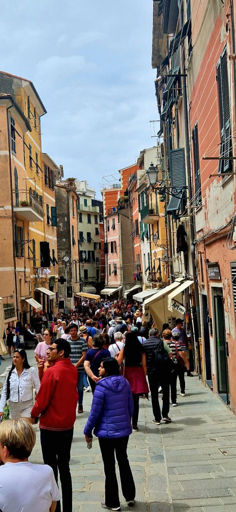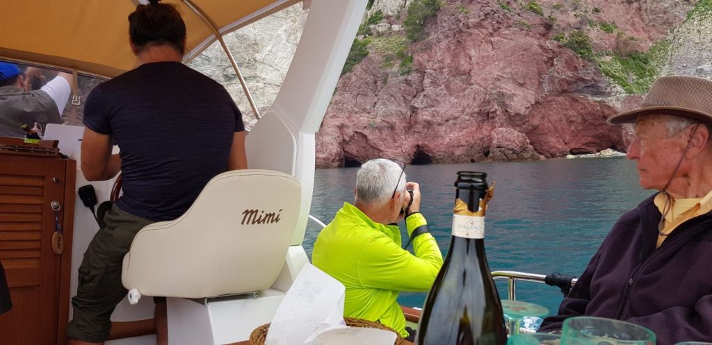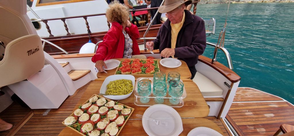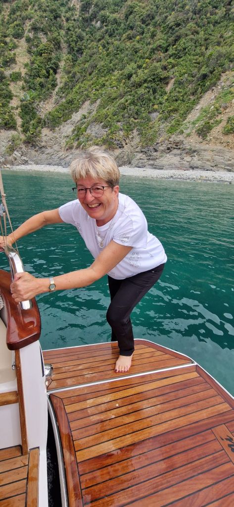 In einer Bucht bei Riomaggiore wartete bereits ein weiteres Boot von Massimo auf uns. Es war grösser und hatte eine Küche an Bord, auf dem unser Lunch zubereitet wurde. Insalata Caprese, Bruschetta und Penne mit Pestosauce…hat alles gut geschmeckt, aber das Geschaukel verdarb der Weltbesten Sozia den Appetit🤢.