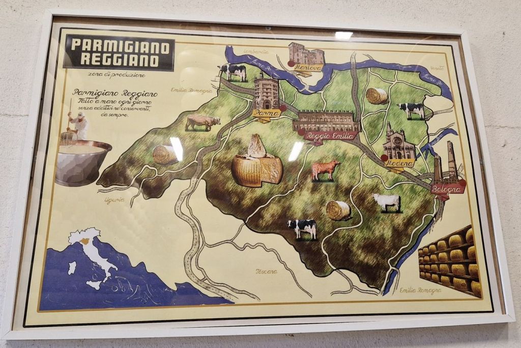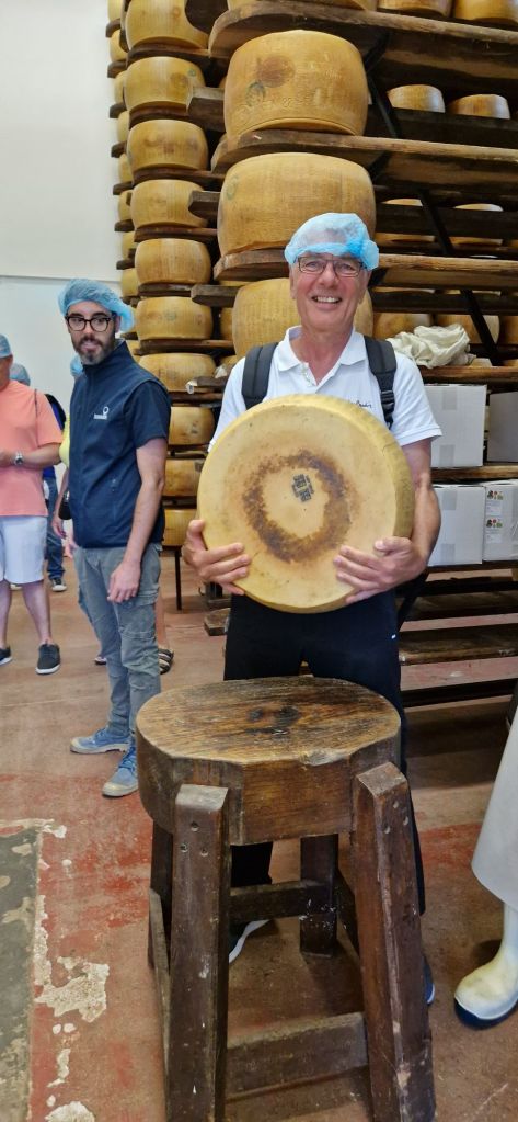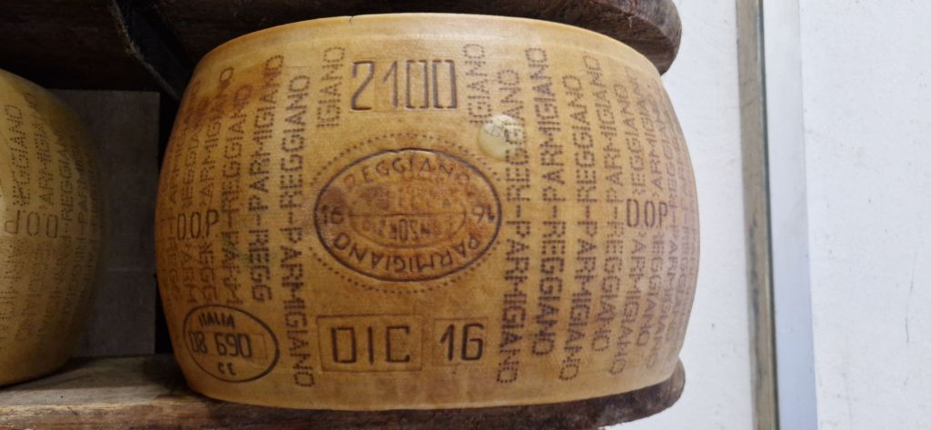 Mattia, unser Guide, erklärte uns, dass der Käse mit dem DOP Siegel nur aus lokalen Zutaten und in einem eng begrenzten Kreis hergestellt werden darf. Alles andere das sich Parmesankäse nennt sei Mist…
