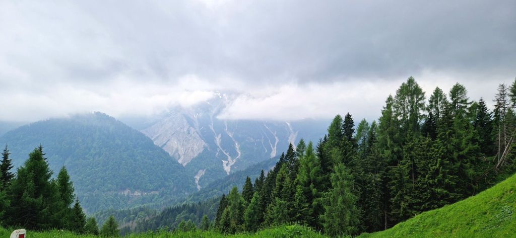 Die drei Zinnen in den Dolomiten spielten ein bisschen Verstecken mit uns…jedesmal wenn wir eine Ausweichstelle zum Halten gefunden hatten, zogen sich die Gipfel hinter die Wolken zurück.