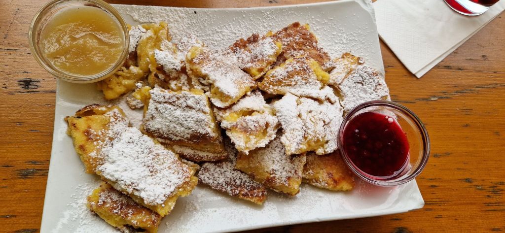 Zum ersten Mal degustierten wir den Kaiserschmarrn. Meine persönliches Fazit…kann man essen, muss man aber nicht. Die wbS war gegenteiliger Meinung.