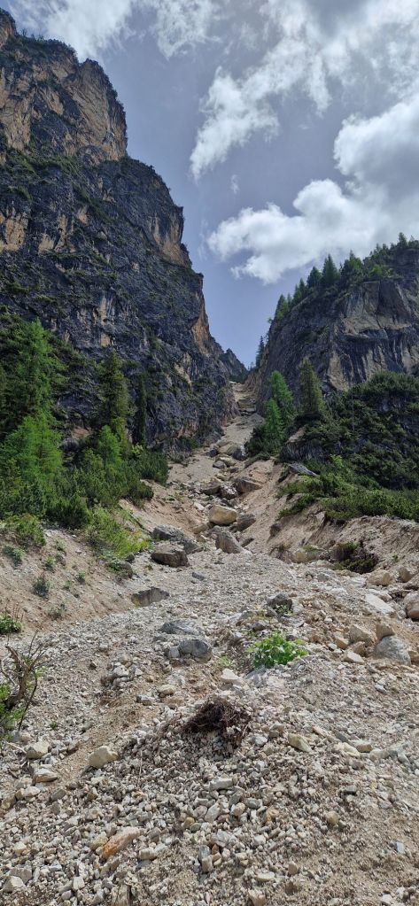 Auf diesem Weg wurden die ungeheuren Gesteinsmassen sichtbar, welche beim Murenabgang 2017 verschoben wurden.