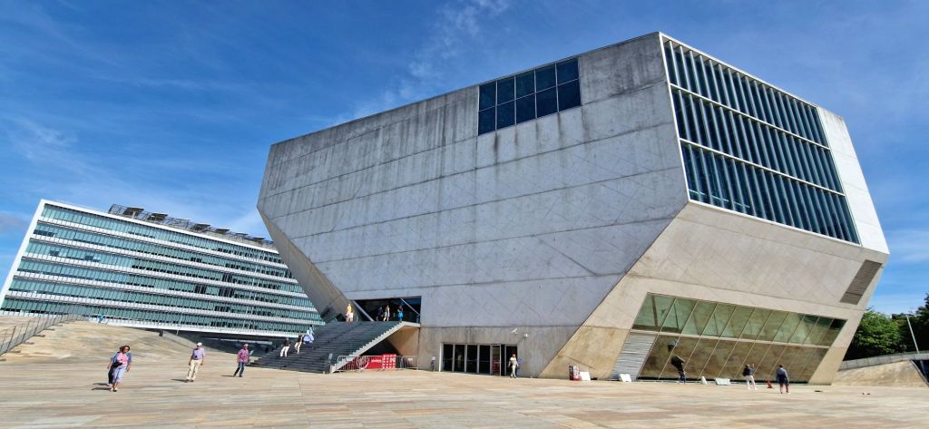 Pünktlich um 08.30 fuhren wir los…über eine der 6 Brücken, die in Porto über den Douro führen, steuerten wir die Casa Musica an. Von den Bewohnern wegen seiner Form auch liebevoll Meteorit genannt.