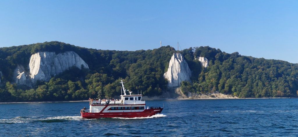 In Sassnitz angekommen, wechselten wir die Fortbewegungsart von Bus auf Schiff. Die Rundtour führte uns an den berühmten Kreidefelsen vorbei.