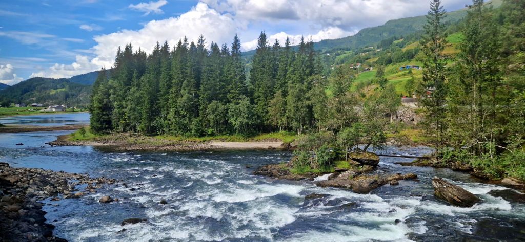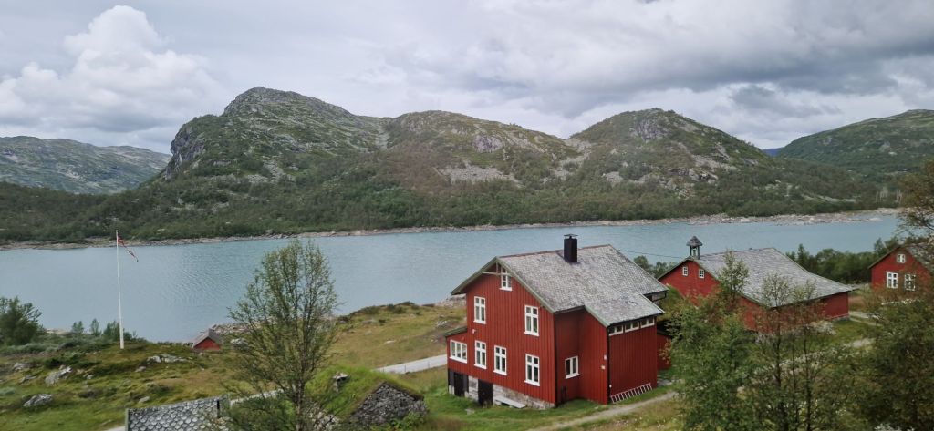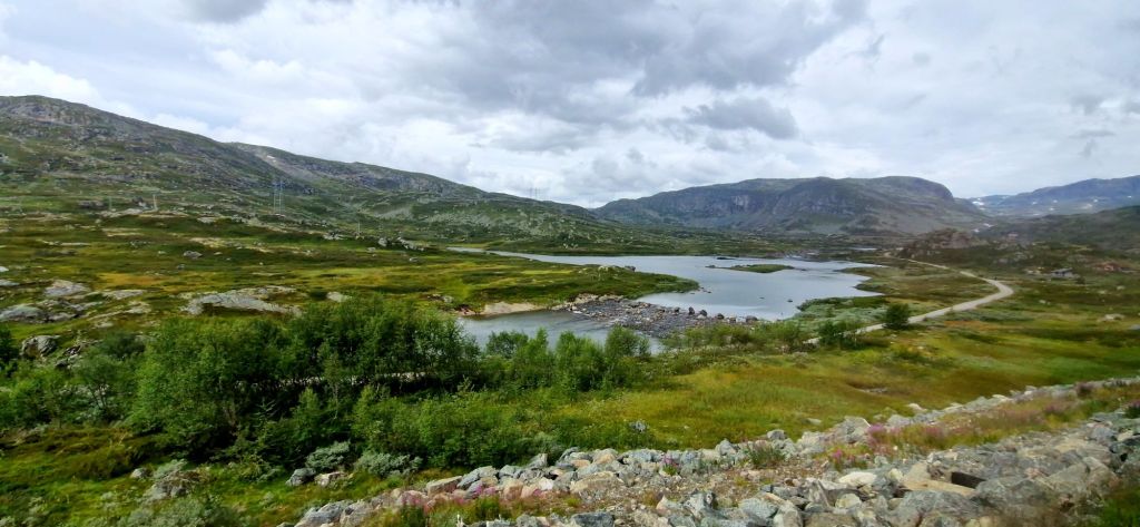 Vor dem Anstieg in die Berge und bis zum höchstgelegenen Bahnhof Finse (1222 m ü.M.) glich die Szenerie einer hochalpinen Landschaft.