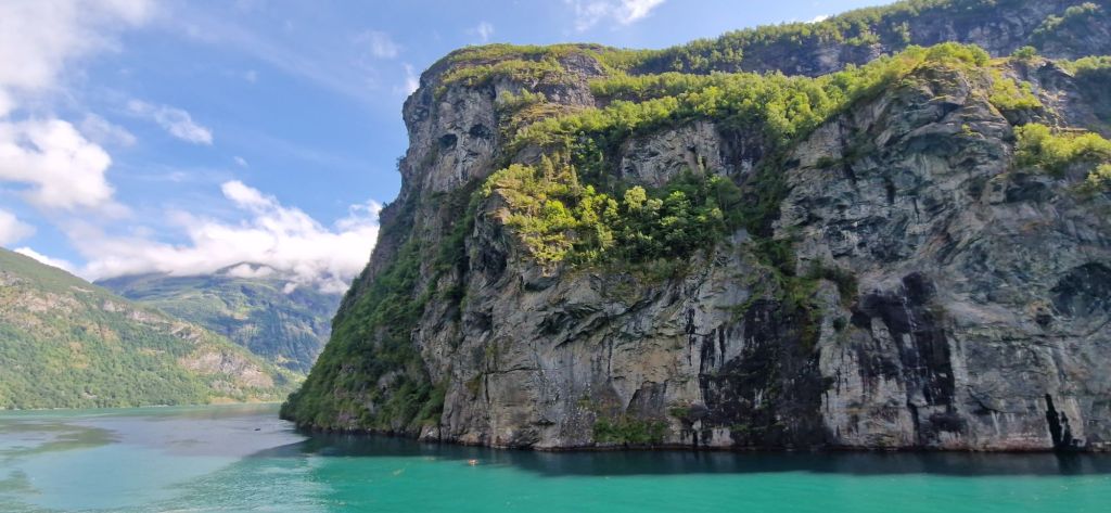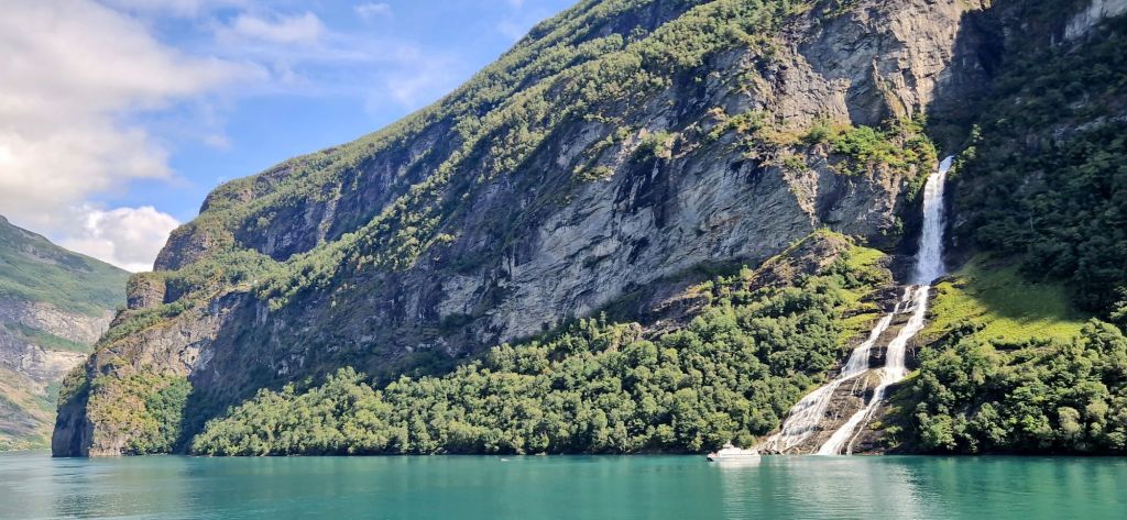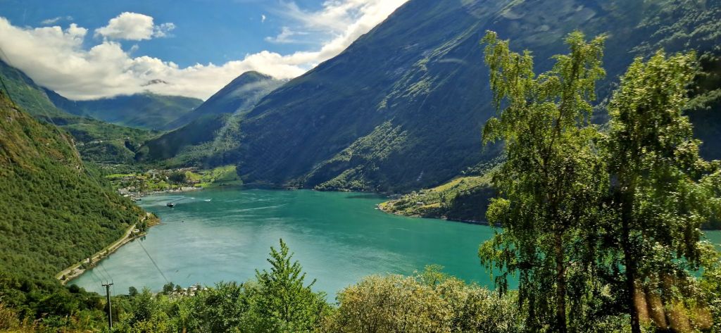 Der Fjord ist etwa 16km lang und gehört zum UNESCO Weltkulturerbe. Er beeindruckt durch steile Klippen, rauschenden Wasserfällen und üppigem Grün.