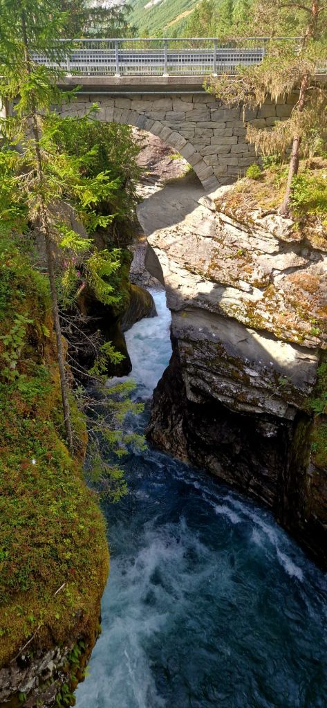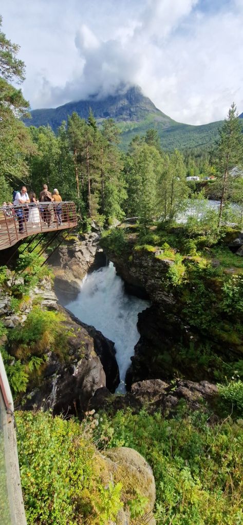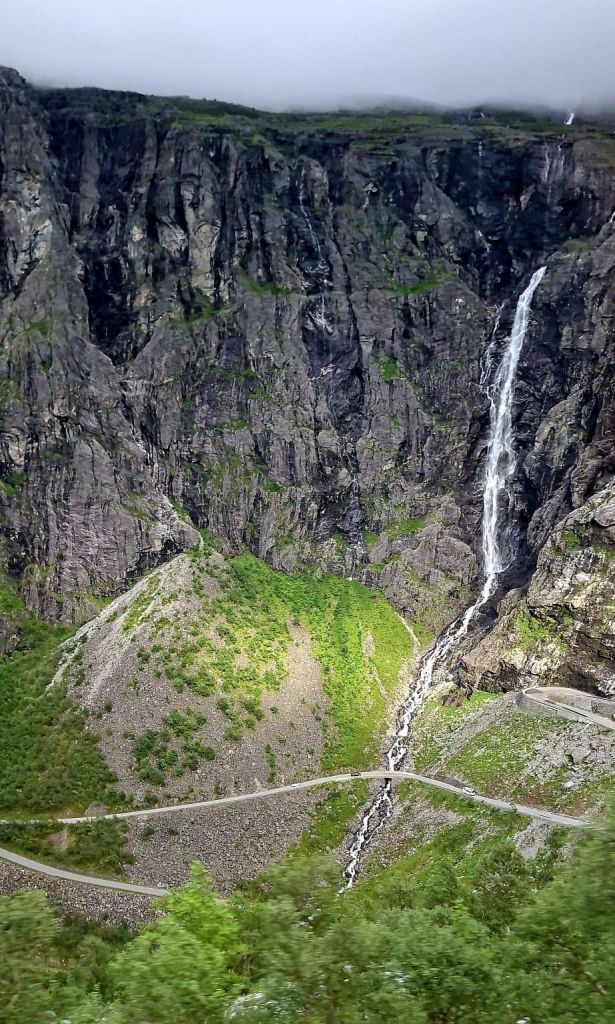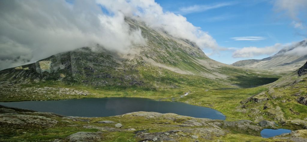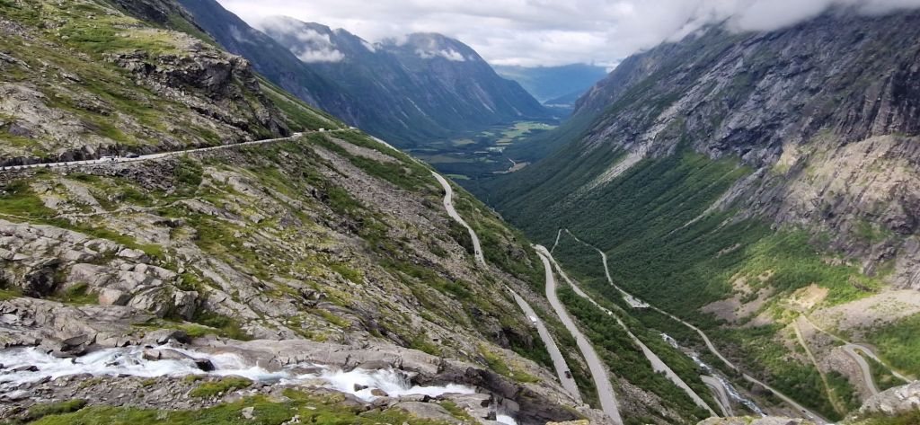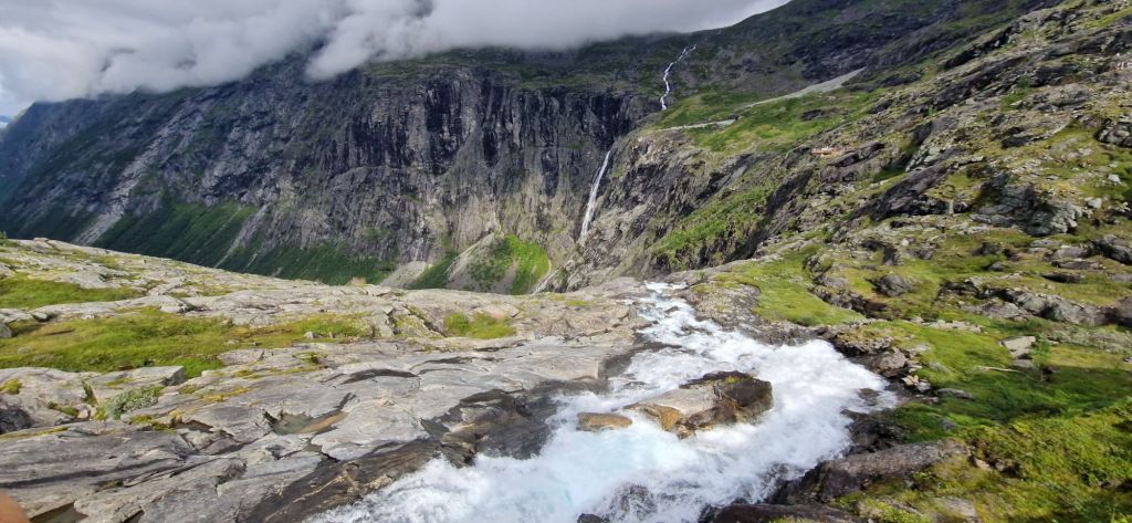 Auf der Fahrt zum Trollstigen, sahen wir noch mehr Wasserfälle und Sumpflandschaften. Allerdings liegt die Baumgrenze schon bei rund 800m, so dass die Landschaft schon hochalpin aussah,