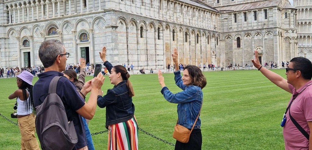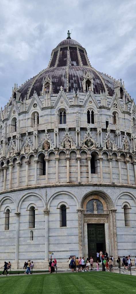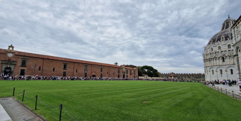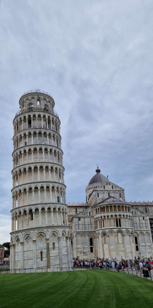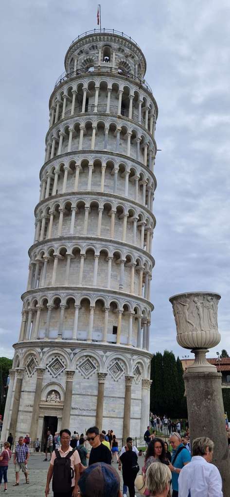 Man kann den Turm fotografieren so viel man will, die tatsächliche Schieflage wird auf dem Bild nicht wirklich ersichtlich. Auf jeden Fall haben wir wieder einmal über die Baukunst der Antike gestaunt…gut der Turm ist abgesoffen, aber hätten die Erbauer damals schon gewusst wie bekannt ihr Gebäude einst wird und wie viele Touristen diesen jeden Tag besuchen…sie wären platt gewesen vor Freude.