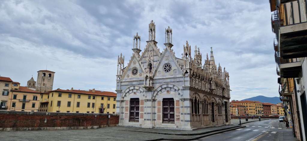 Weiter führte uns der Weg in die Innenstadt. Vorbei an der Kirche Santa Maria della Spina, die ursprünglich auf dem Kiesbett des Arno gestanden hat. Mehrmals musste die Kirche wegen Hochwasser restauriert werden. Daher entschied man sich 1871 die Kirche zu demontieren und an einer höher gelegene Stelle des Arnoufers neu aufzubauen.