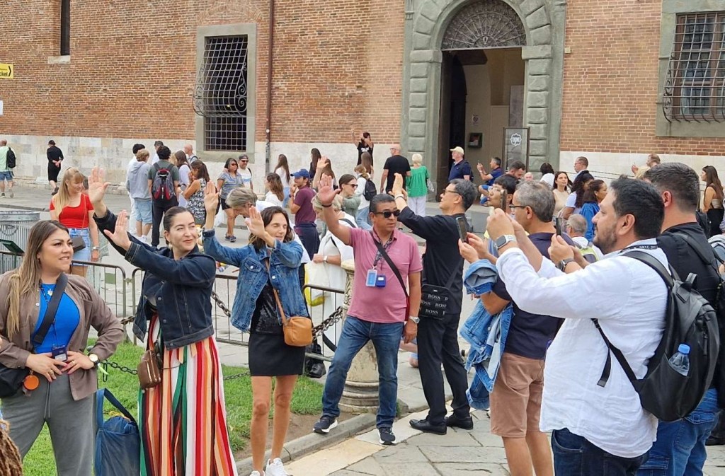 Frisch gestylt wollten wir uns den Turm bei Tag ansehen…Eine ganze Schiffsladung wollte dies auch…und alle wollen den Turm stützen!!!
