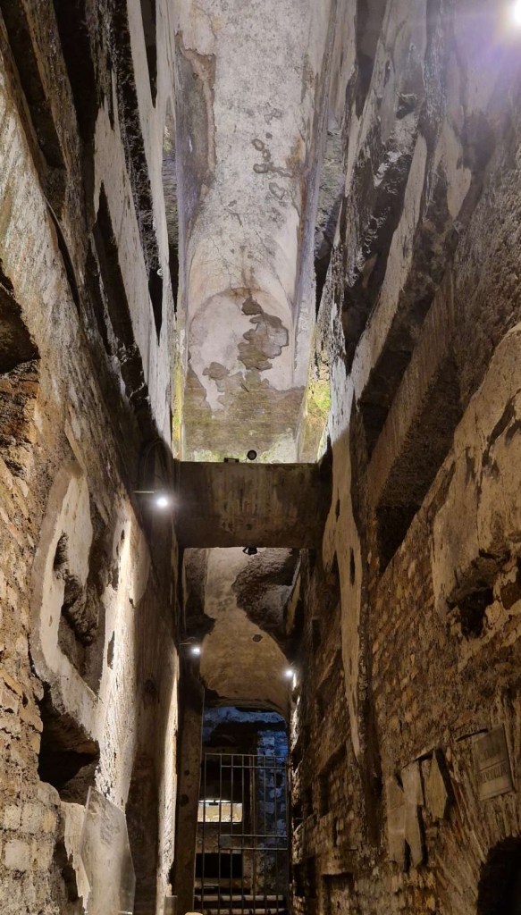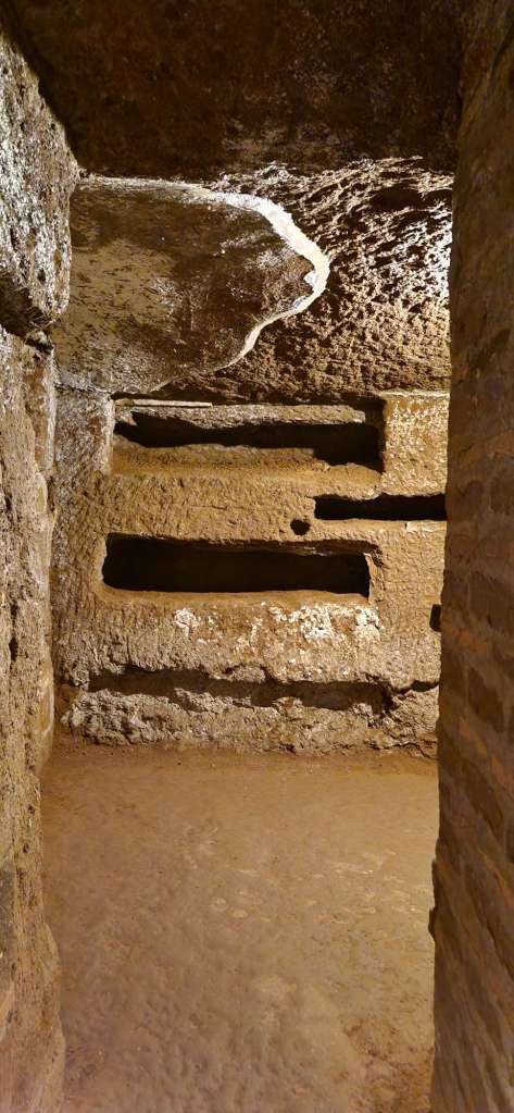 Die unterirdisch angelegten Begräbnisstätten wurden auf mehreren Etagen übereinander angelegt und mit Gängen versehen. Die besichtigte Katakombe an der via Appia beherbergte ca. 250’000 Gräber.